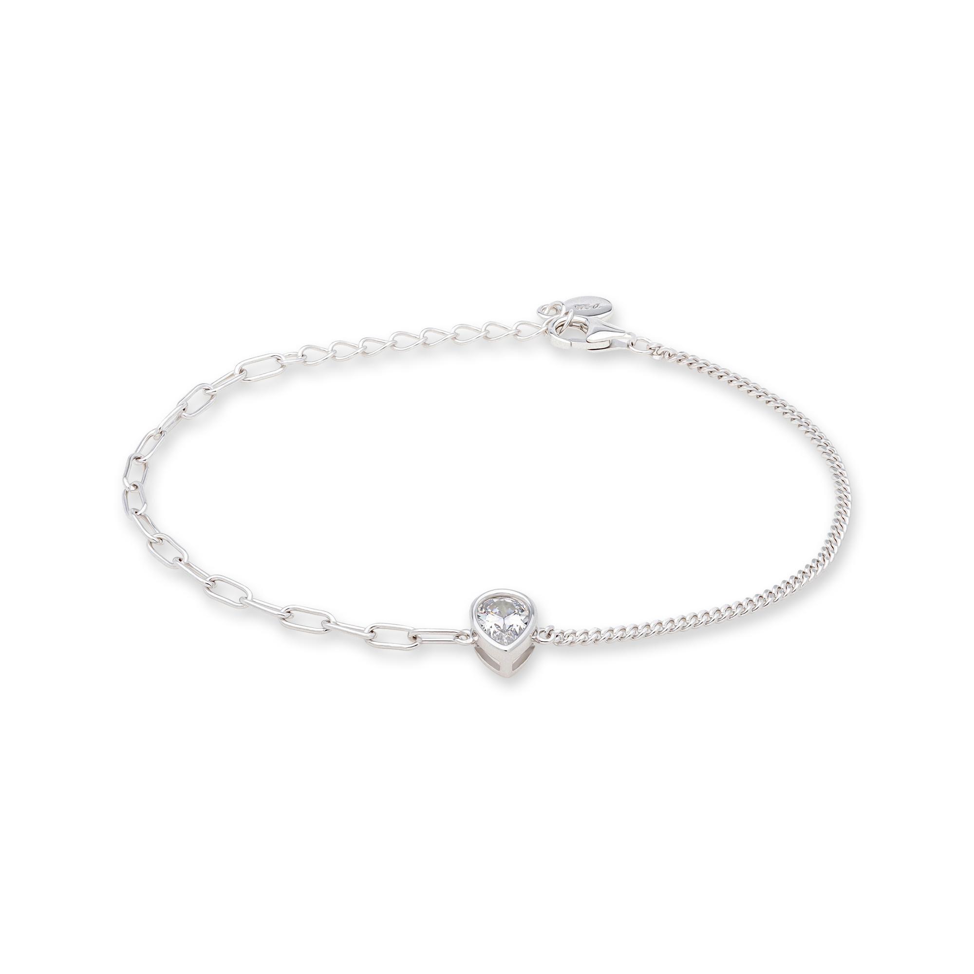 Questo bracciale firmato L'Atelier Sterling Silver 925 è un gioiello moderno dal fascino nostalgico. La gemma sfaccettata al centro è trasparente. Il bracciale è regolabile in larghezza e si chiude con stile con un moschettone.