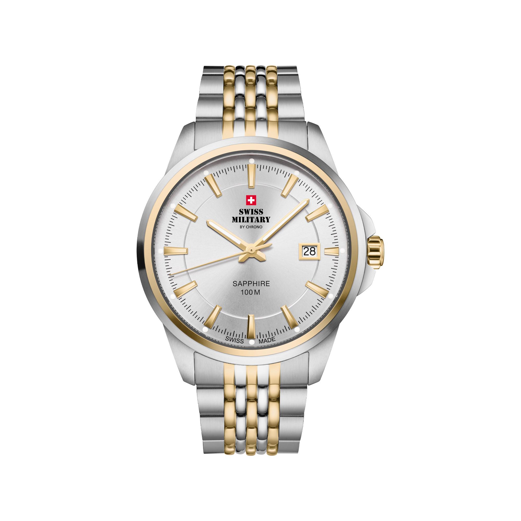 Questo orologio da uomo resistente non � solo alla moda, � anche un accessorio affidabile ed esigente per ogni momento. L'elegante design bicolore presenta un quadrante argentato con indici e lancette classici. Inoltre, questo orologio da uomo � dotato di tutte le nostre caratteristiche di qualit� Swiss-made: Produzione interna svizzera Cassa e cinturino in acciaio inossidabile Vetro zaffiro Impermeabilit� fino a 100M/10ATM Movimento al quarzo svizzero