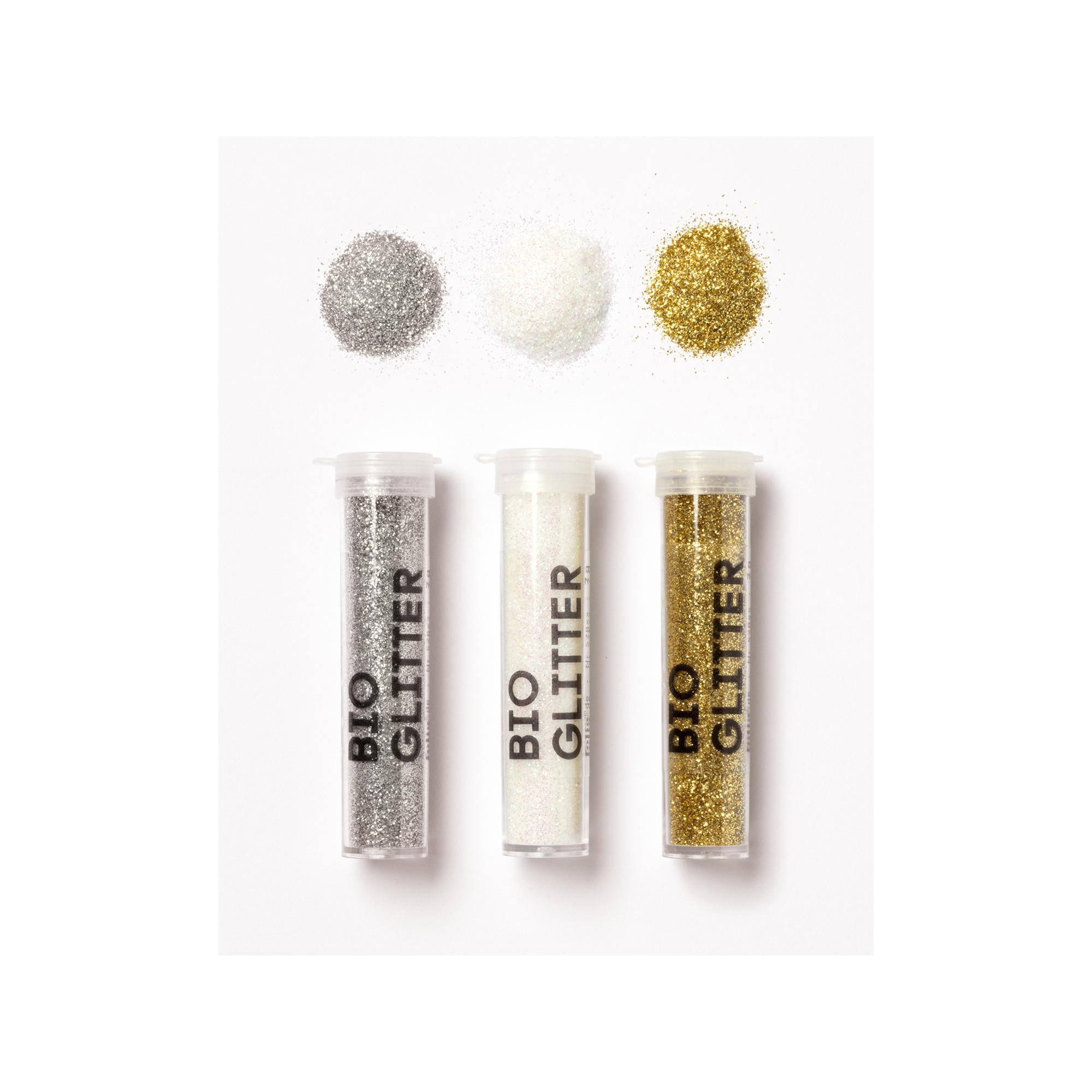 BIO Glitter Mix STARDUST "M", 5 tubi da 7 g, 2x oro, 2x argento, 1x bianco iridescente