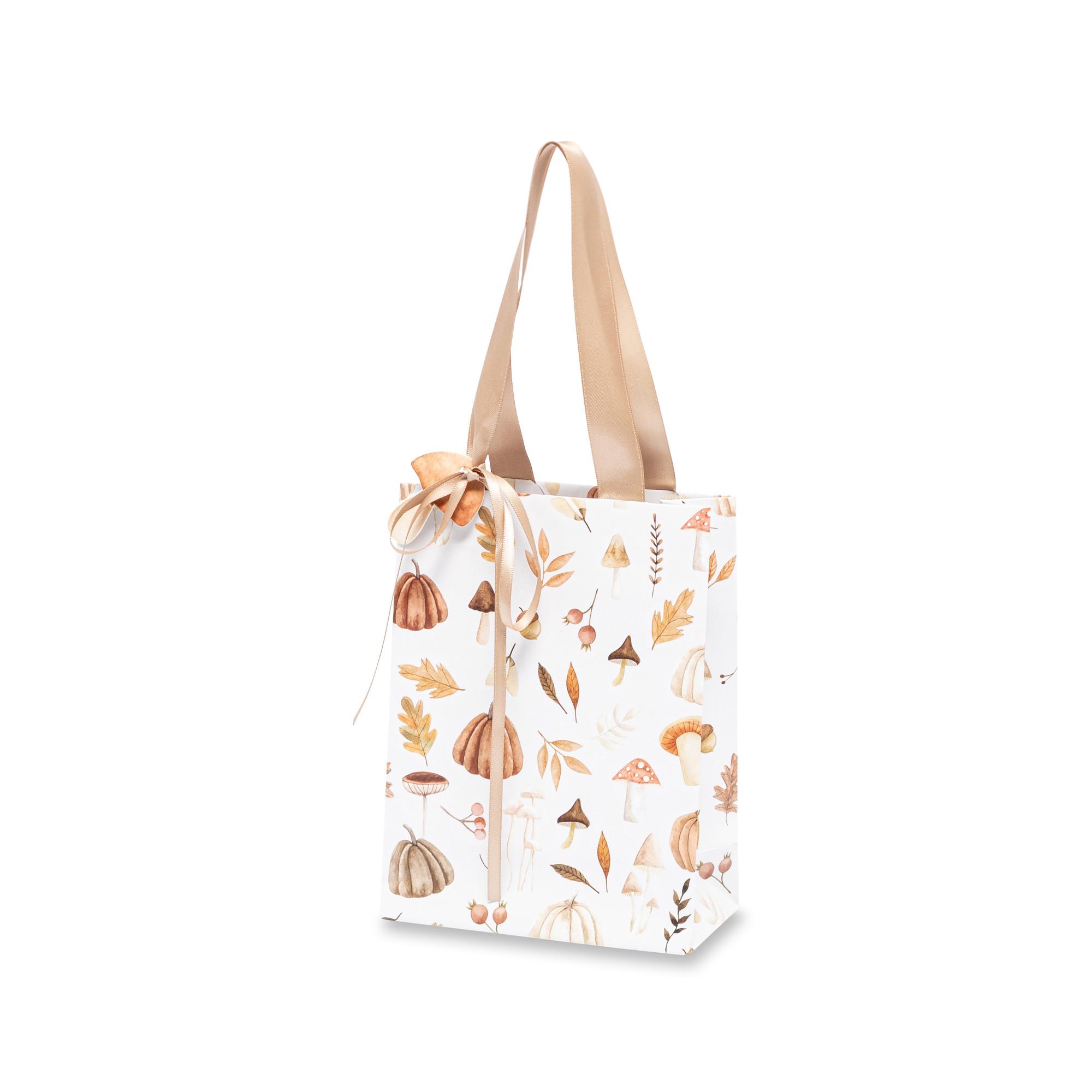 Questo sacchetto regalo firmato Manor con design autunnale e ciondolo è disponibile in diversi formati – per regali semplici e ricchi di gioia.