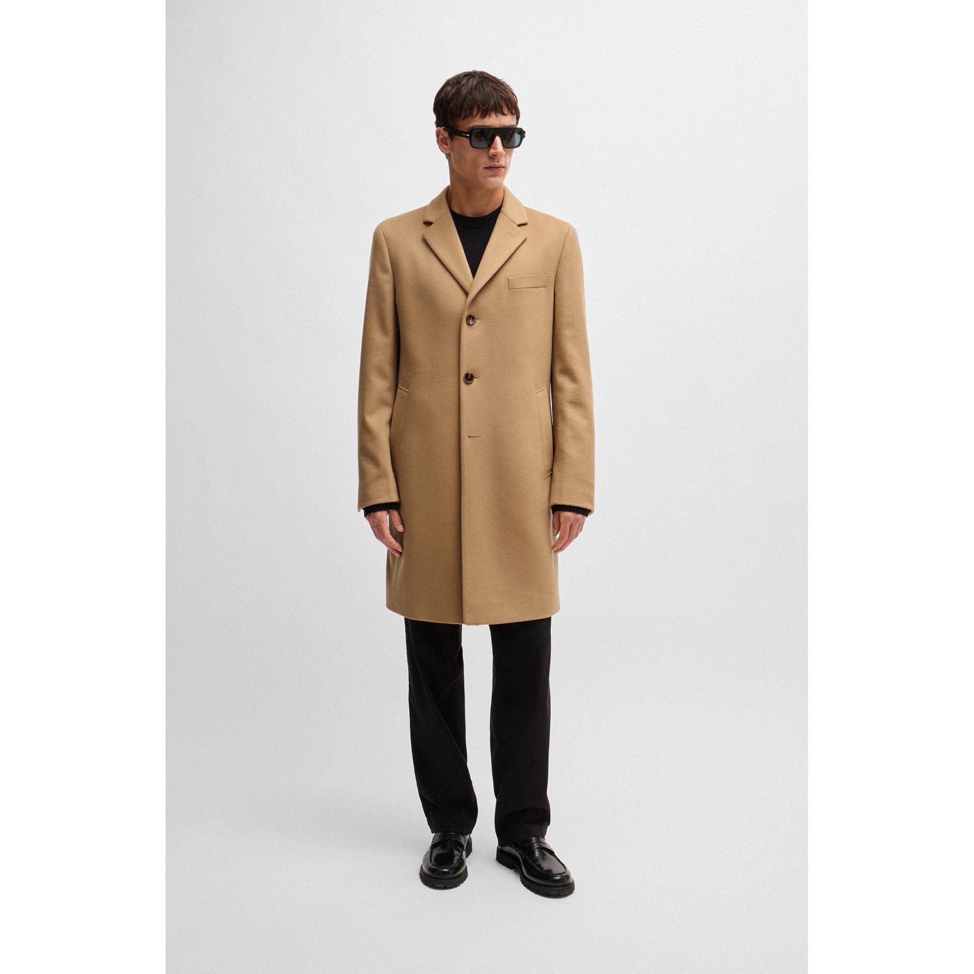 Questo cappotto BOSS è realizzato in misto lana vergine con una pregiata percentuale di cashmere ed è dal taglio slim. Questo modello elegante, foderato, è ideale per occasioni formali.