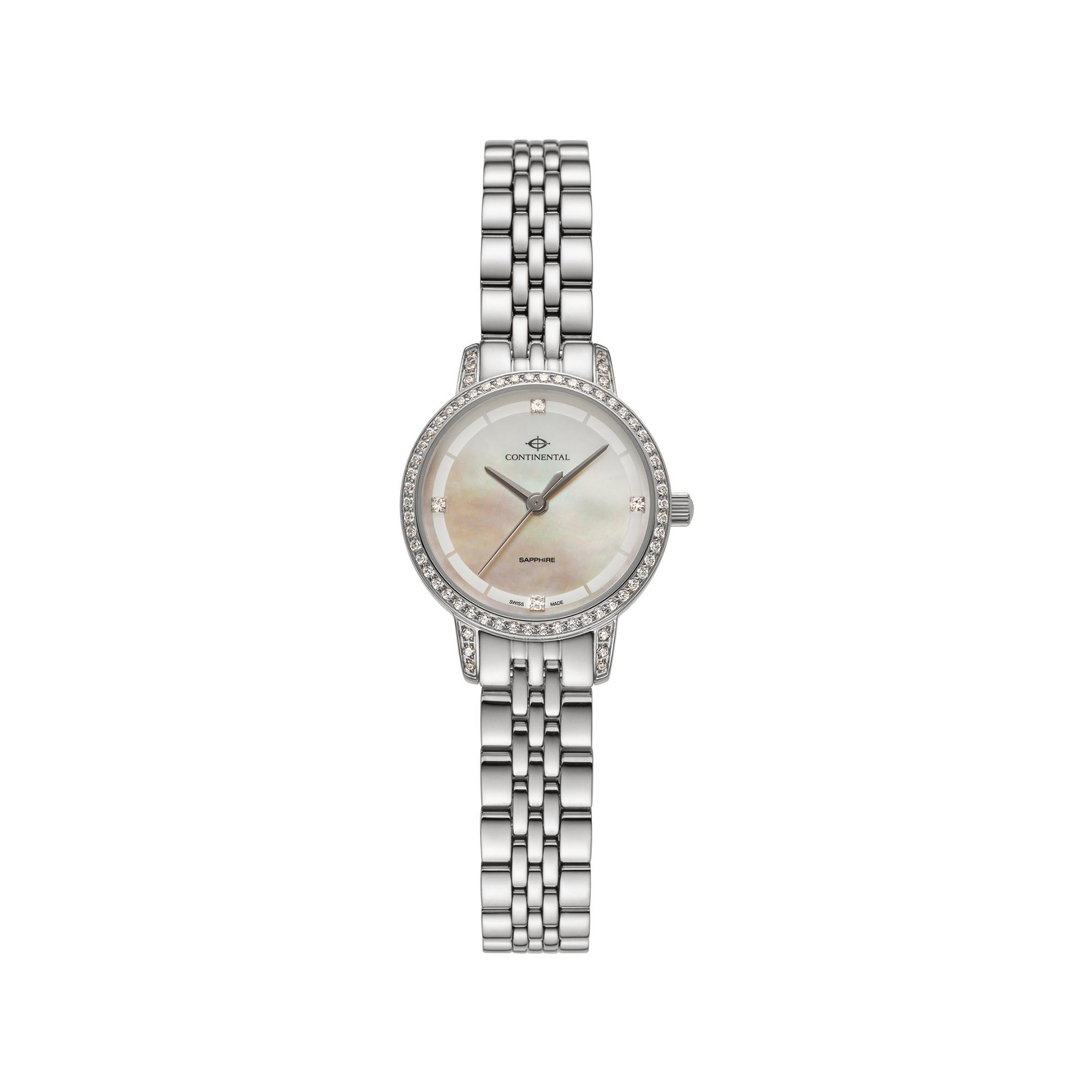 Questo accattivante orologio da donna della collezione di tendenza firmata Continental ha una cassa in acciaio inossidabile e un quadrante in madreperla bianca. Con una resistenza all'acqua di 30 metri, è protetto contro gli spruzzi d'acqua ed è adatto per lavarsi le mani e per la pioggia.