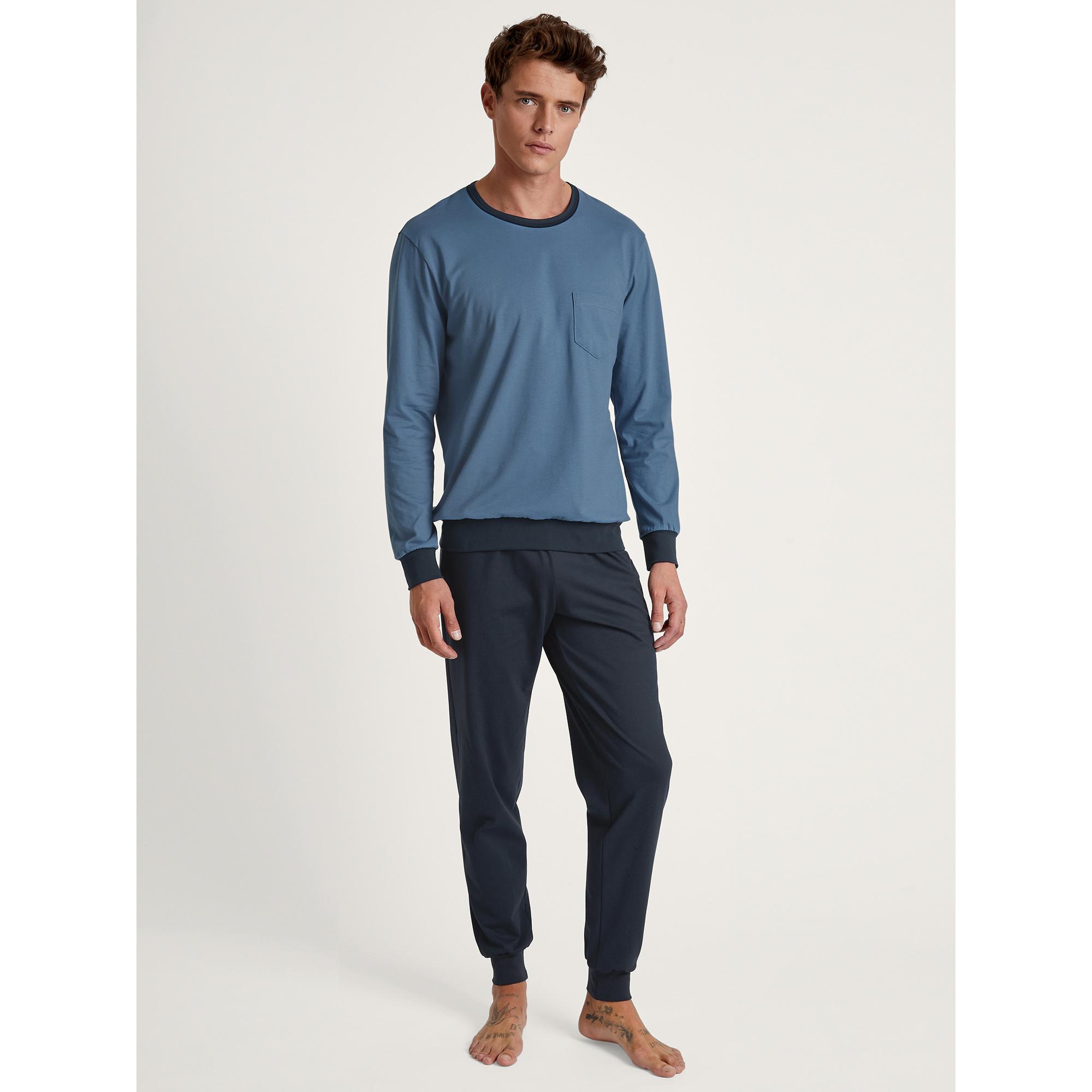 Questo pigiama Calida in 100% cotone offre un elevato comfort grazie a materiali morbidi, delicati sulla pelle e traspiranti. Presenta polsini morbidi alle estremità, una tasca sul petto applicata e pantaloni con cintura rivestita in tessuto. La qualità del jersey singolo stabile nella forma è durevole e facile da curare, mentre la vestibilità comoda e ampia garantisce un comfort aggiuntivo.