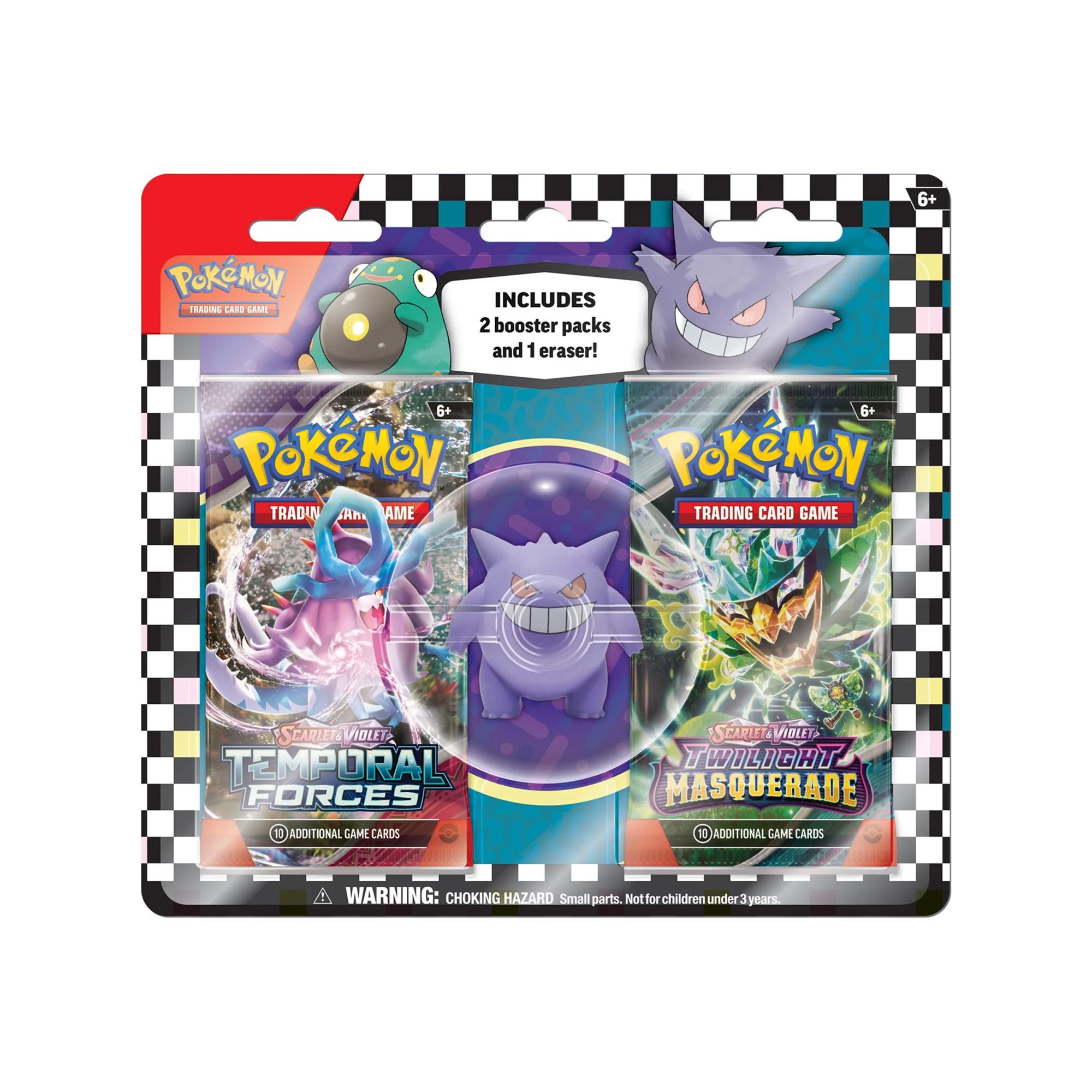 Pokémon 2 confezioni booster e 1 gomma da cancellare, inglese, modelli assortiti