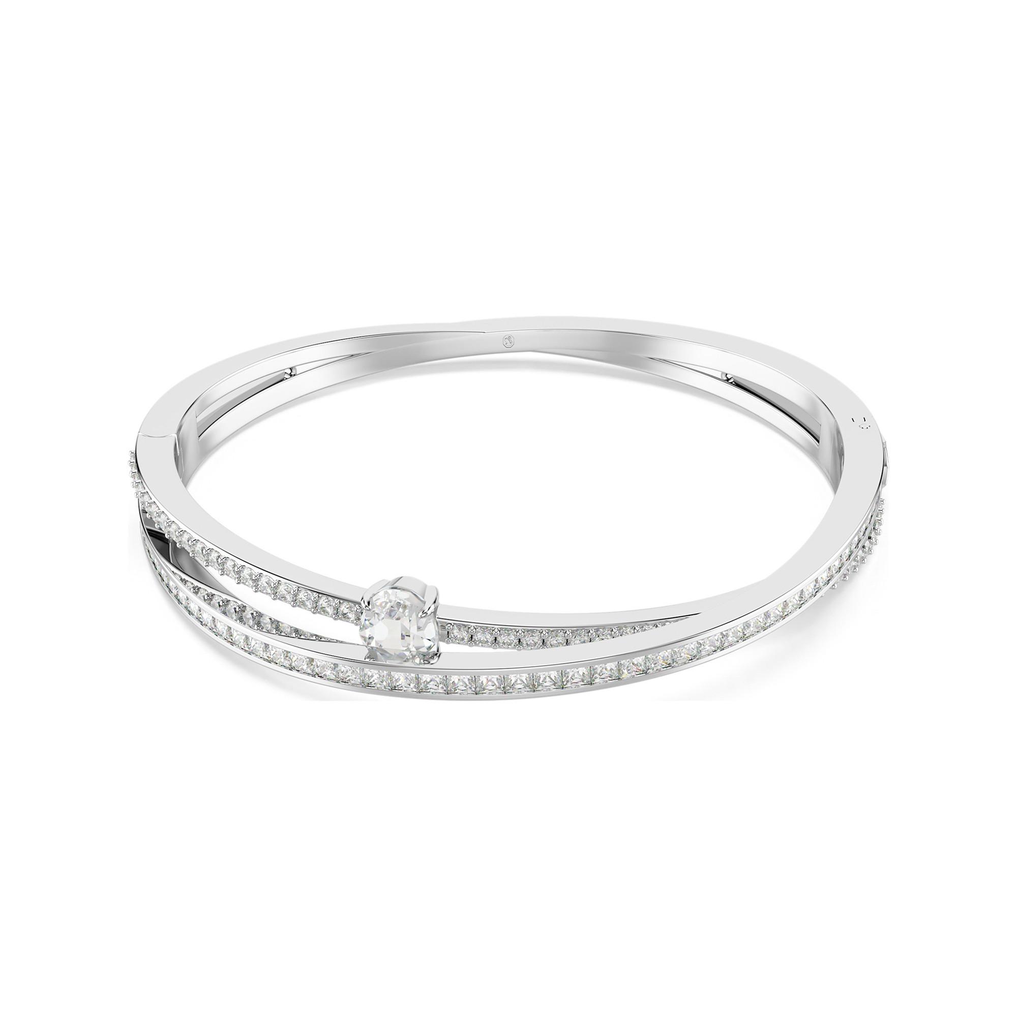 Questo bangle Hyperbola attorcigliato è una meraviglia di design. Caratterizzato da due fasce placcate rodio sovrapposte, il gioiello è impreziosito da Swarovski Zirconia trasparenti con montature a binario e a griffe. Un ulteriore cristallo dal taglio Oval è posto al suo centro per conferire all’insieme un ancor maggiore impatto. Abbina questo raffinato gioiello ad un outfit minimalista per esaltare la bellezza che nasce dal contrasto.