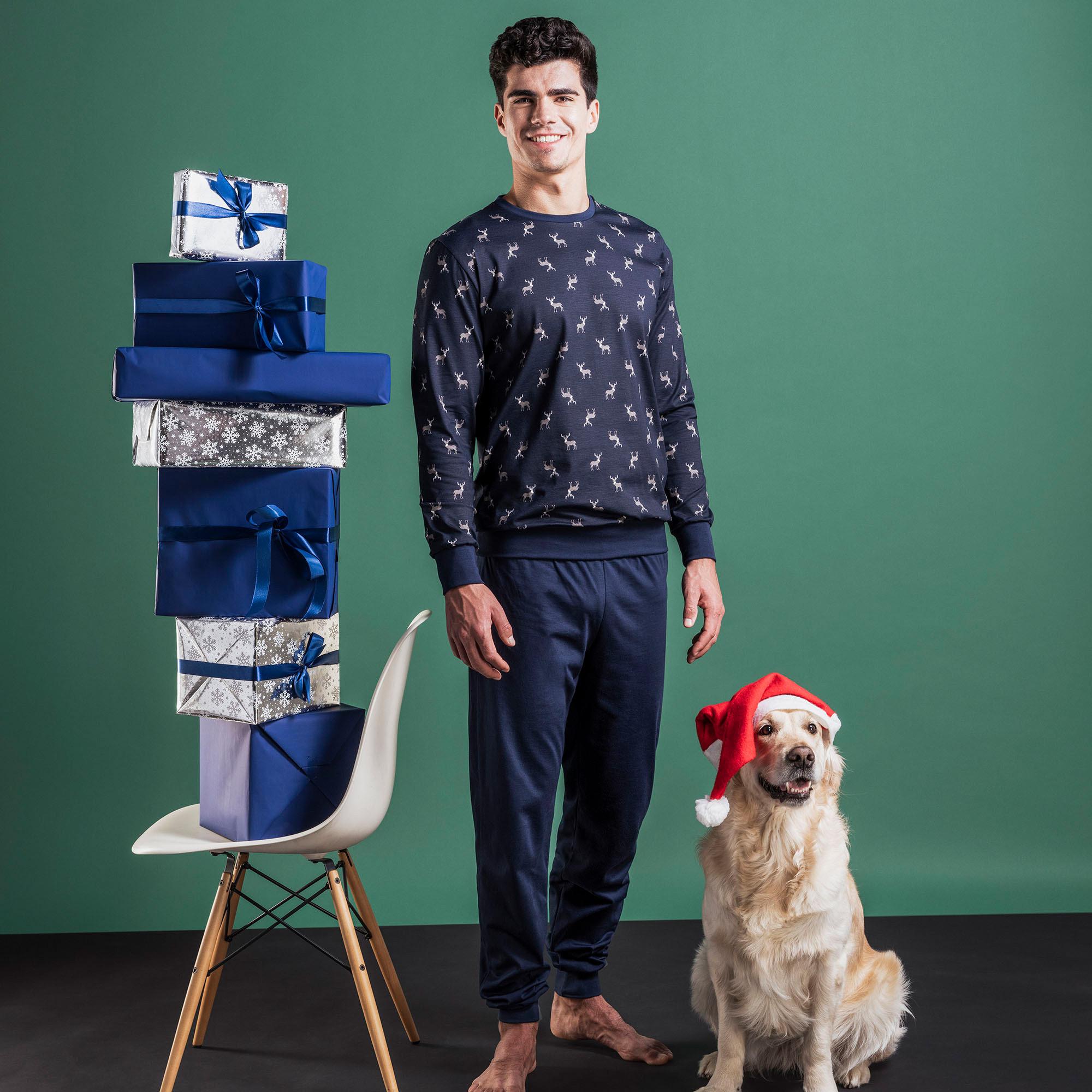 Questo pigiama con motivo di renna offre il massimo comfort e un design festivo per gli uomini. Il tessuto morbido garantisce notti piacevoli e libertà di movimento ottimale. Perfetto per le serate invernali accoglienti e il periodo natalizio.