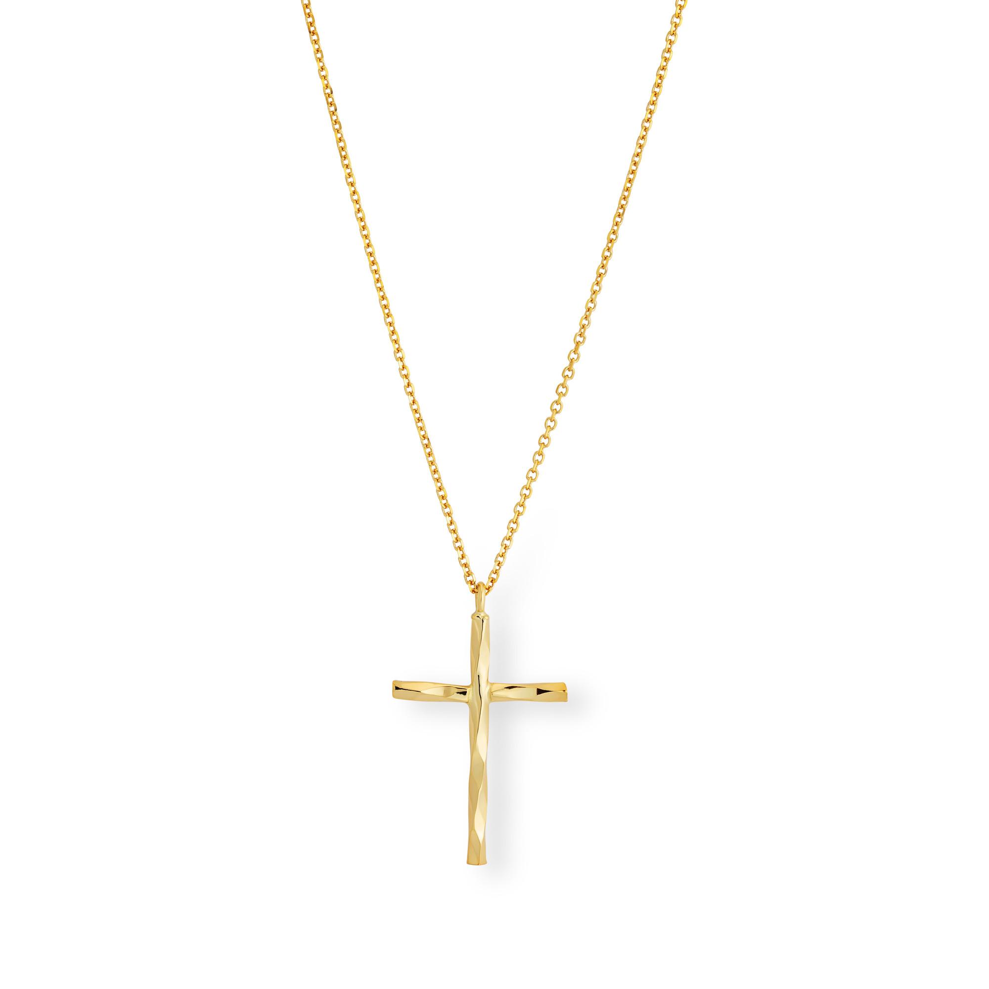 Questa collana di L'Atelier Gold 18 Karat di Manor è composta da una catena a maglie con un ciondolo a croce leggermente attorcigliato. La catena è regolabile in lunghezza e si chiude con un moschettone.