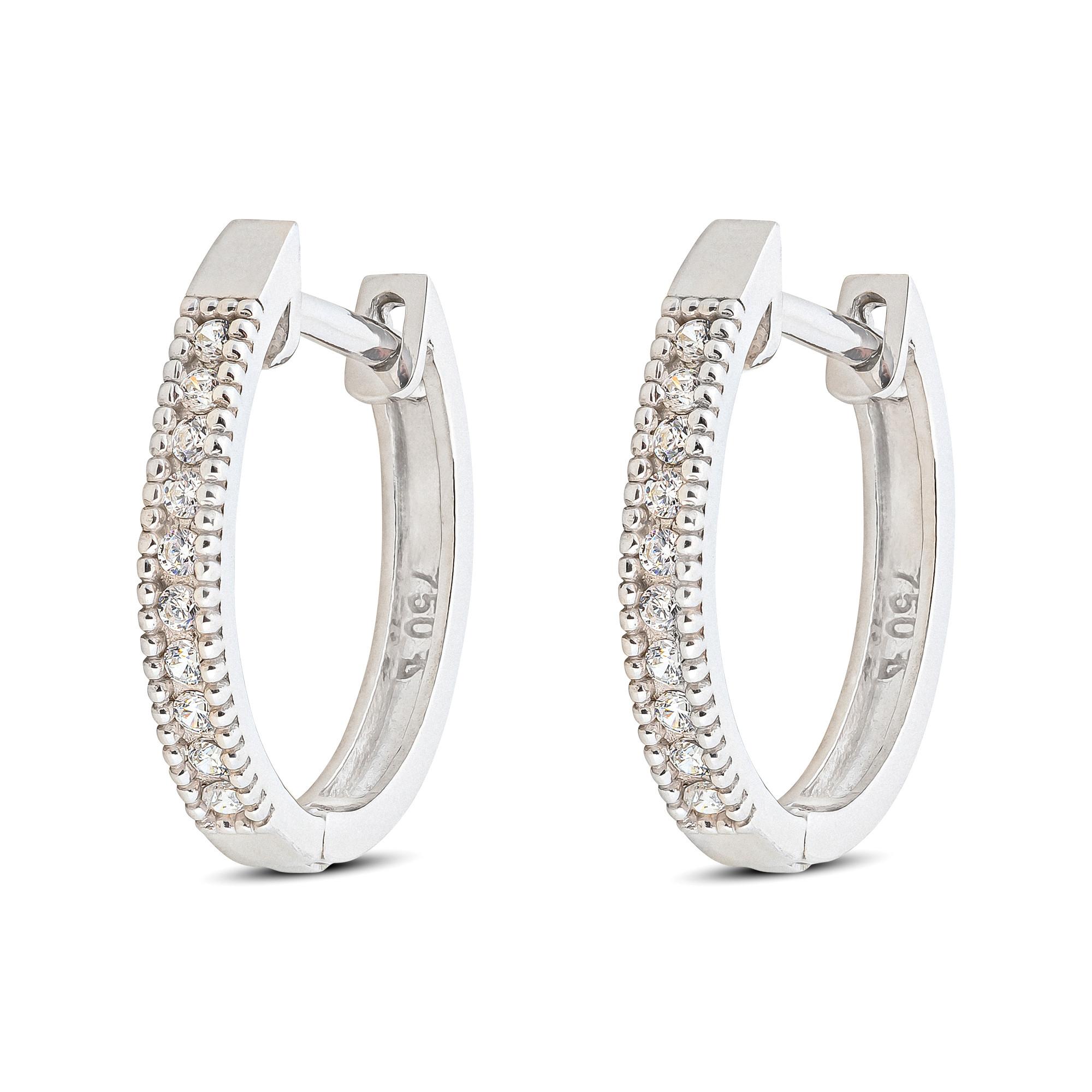 Questi orecchini a cerchio in oro bianco firmati L'Atelier Gold 18 Karat by Manor sono incastonati con zirconi. I gioielli femminili e delicati donano un carattere sobrio.