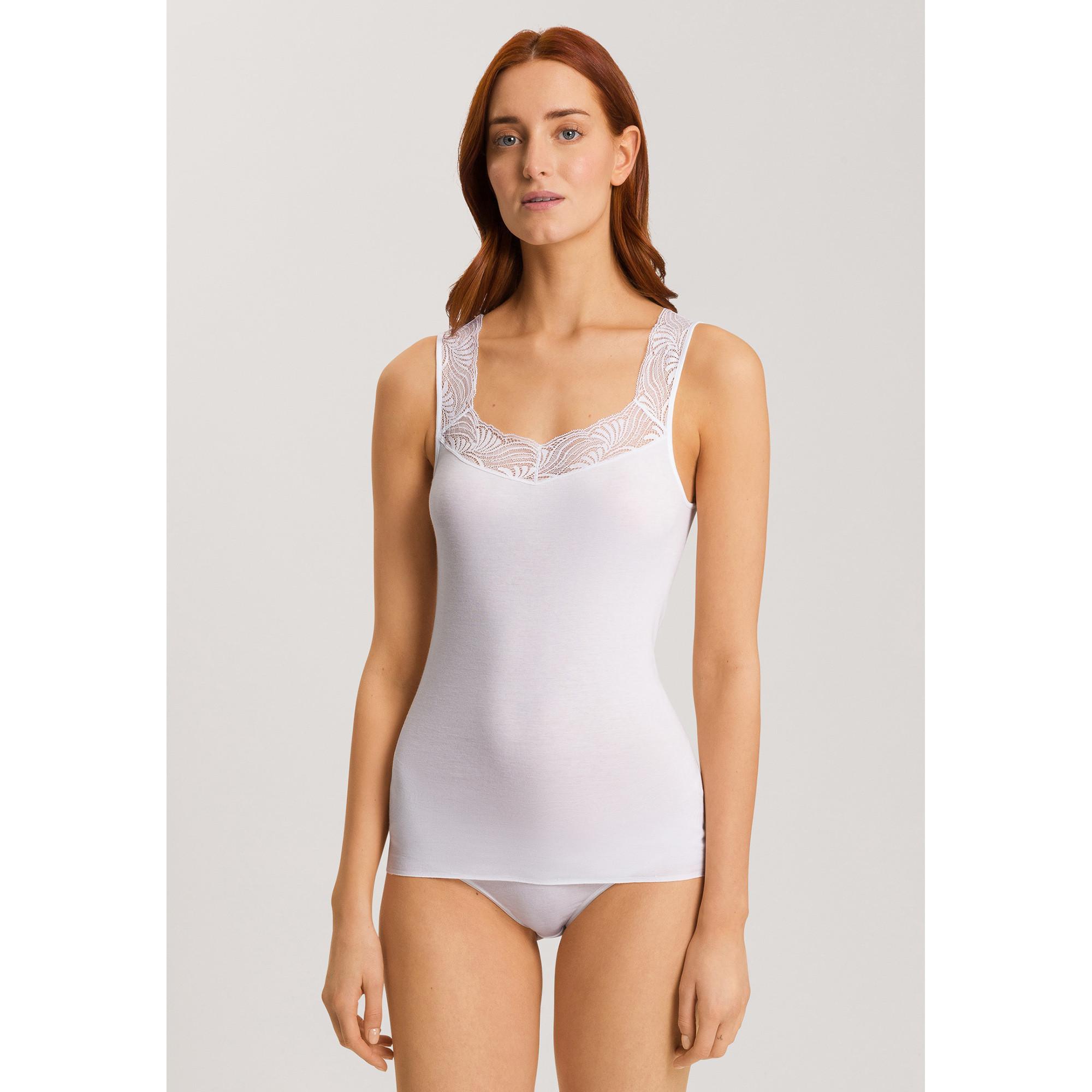 Questo top senza maniche da donna della serie Cotton Delight di Hanro è realizzato in 100 % cotone mercerizzato, lavorato con qualità superiore. Senza cuciture laterali fastidiose e decorato con delicata pizzo sulle spalline e sul décolleté, offre un comfort lussuoso per le amanti del cotone.