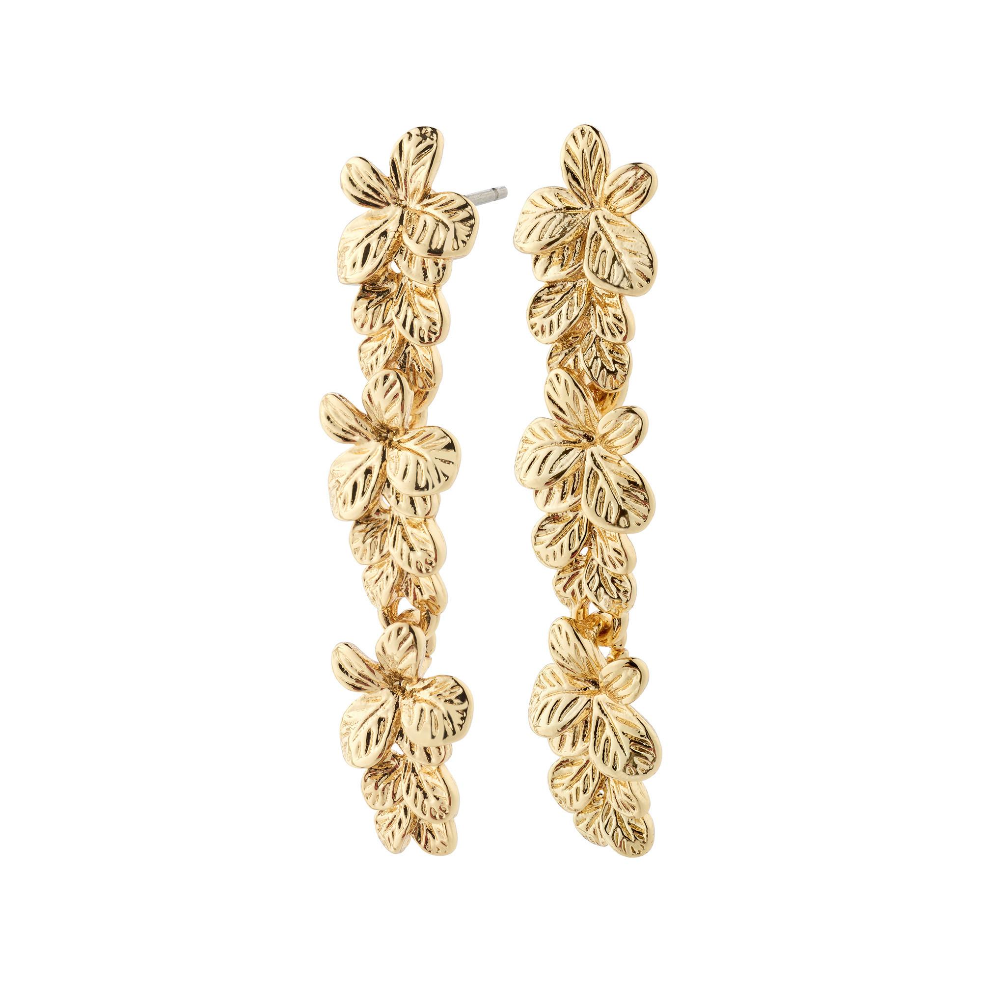 Gli orecchini placcati in oro CHARMAINE firmati Pilgrim sono caratterizzati da un design floreale unico, ispirato alla natura e con una vivace espressione bohémien. Sono realizzati con il 98% di materiali riciclati, tra cui zinco e acciaio, e offrono quindi una scelta sostenibile per le donne attente allo stile.