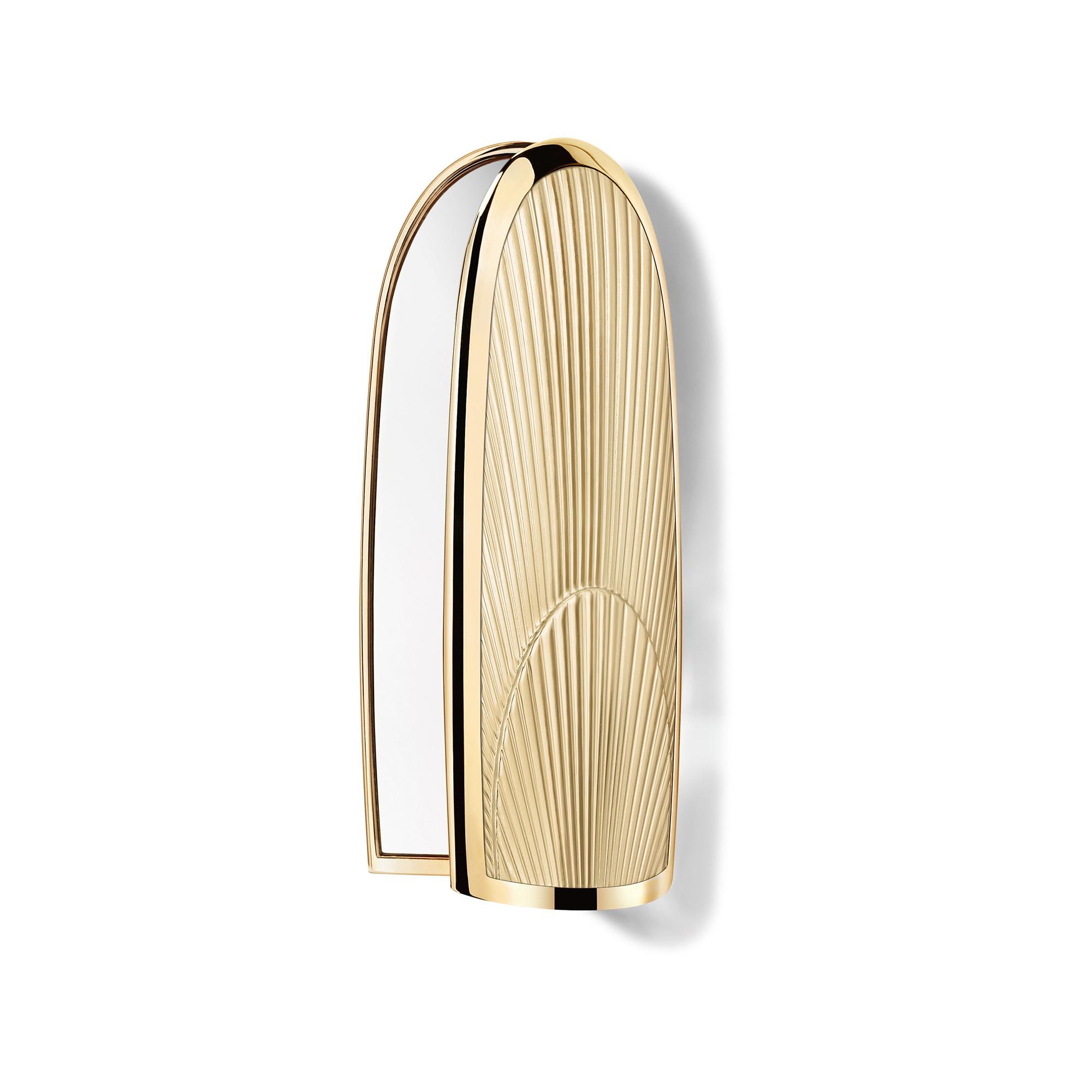 Anche il design dell'iconico rossetto viene reinterpretato con un nuovo packaging dorato che cela un doppio specchio segreto.
