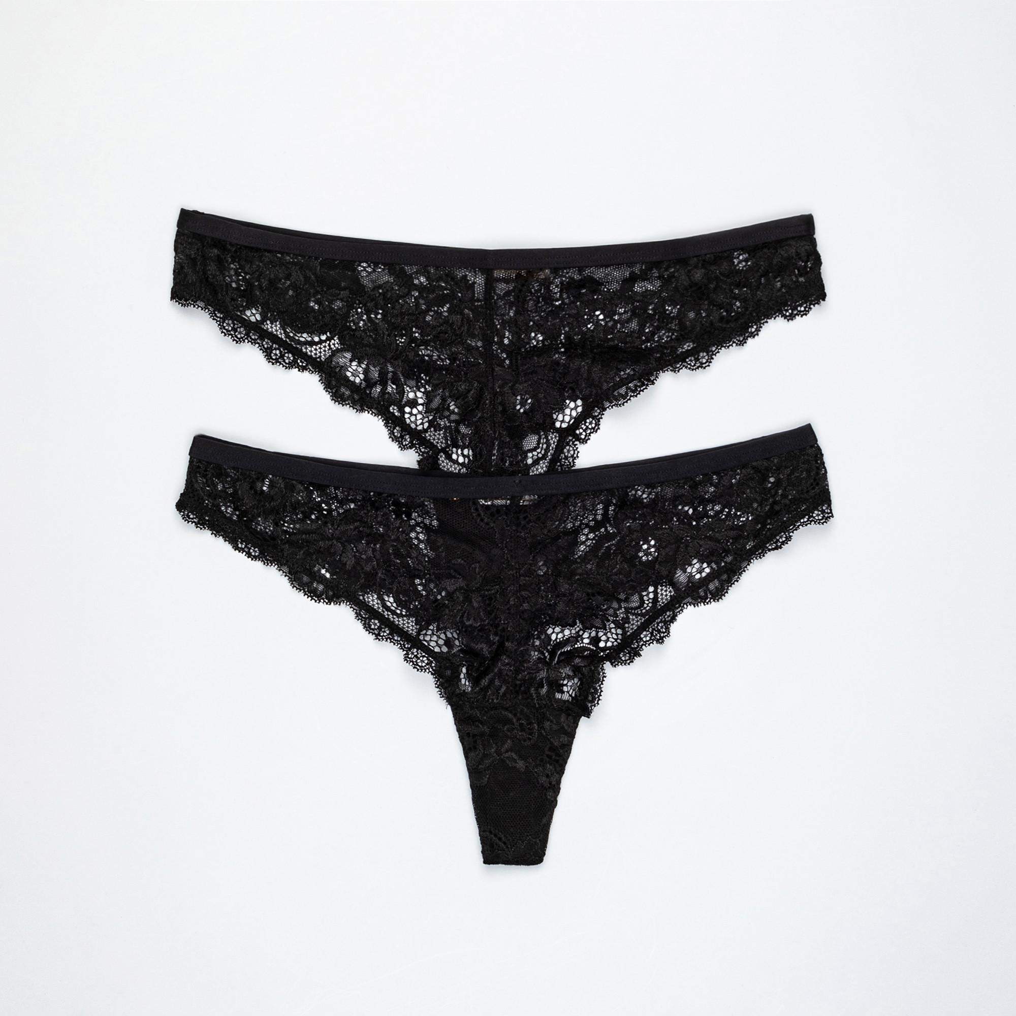 Questa confezione doppia di perizoma offre un design delicato ed elegante. I perizoma sono realizzati con pizzo intricato, garantendo un look sofisticato e un comfort ottimale. La confezione include due pezzi, rendendola un'aggiunta pratica a qualsiasi guardaroba.
