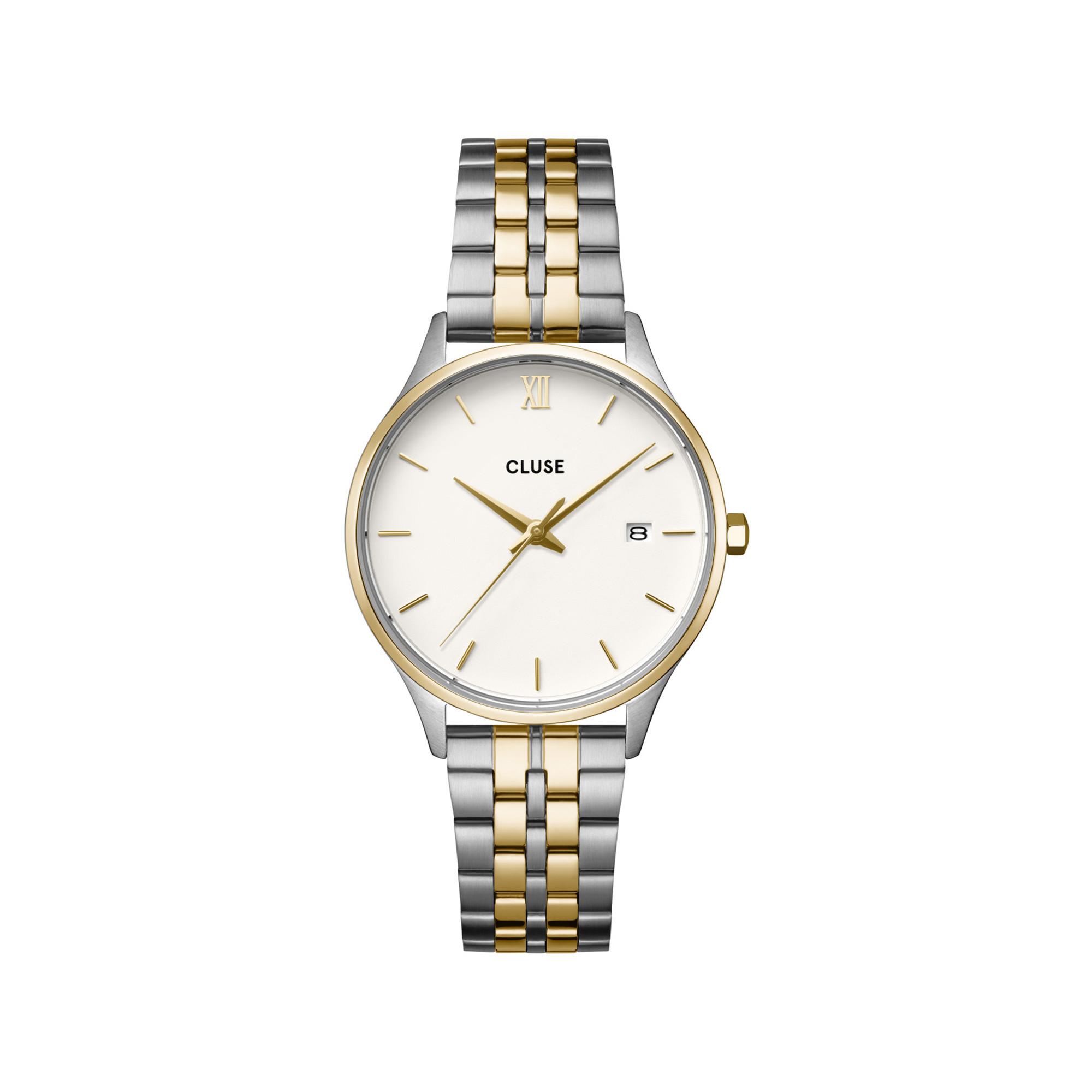 Aggiungete un tocco di stile ed eleganza al vostro guardaroba quotidiano con l'orologio Minuit Date da donna. Con una cassa rotonda da 34 mm di colore oro e argento, un bracciale bicolore a 5 maglie e la funzione data a ore 3, questo orologio bicolore è sicuramente l'accessorio per il controllo del tempo per eccellenza! È possibile personalizzare facilmente l'aspetto dell'orologio con qualsiasi cinturino da 16 mm. È possibile regolare facilmente le dimensioni del cinturino.
