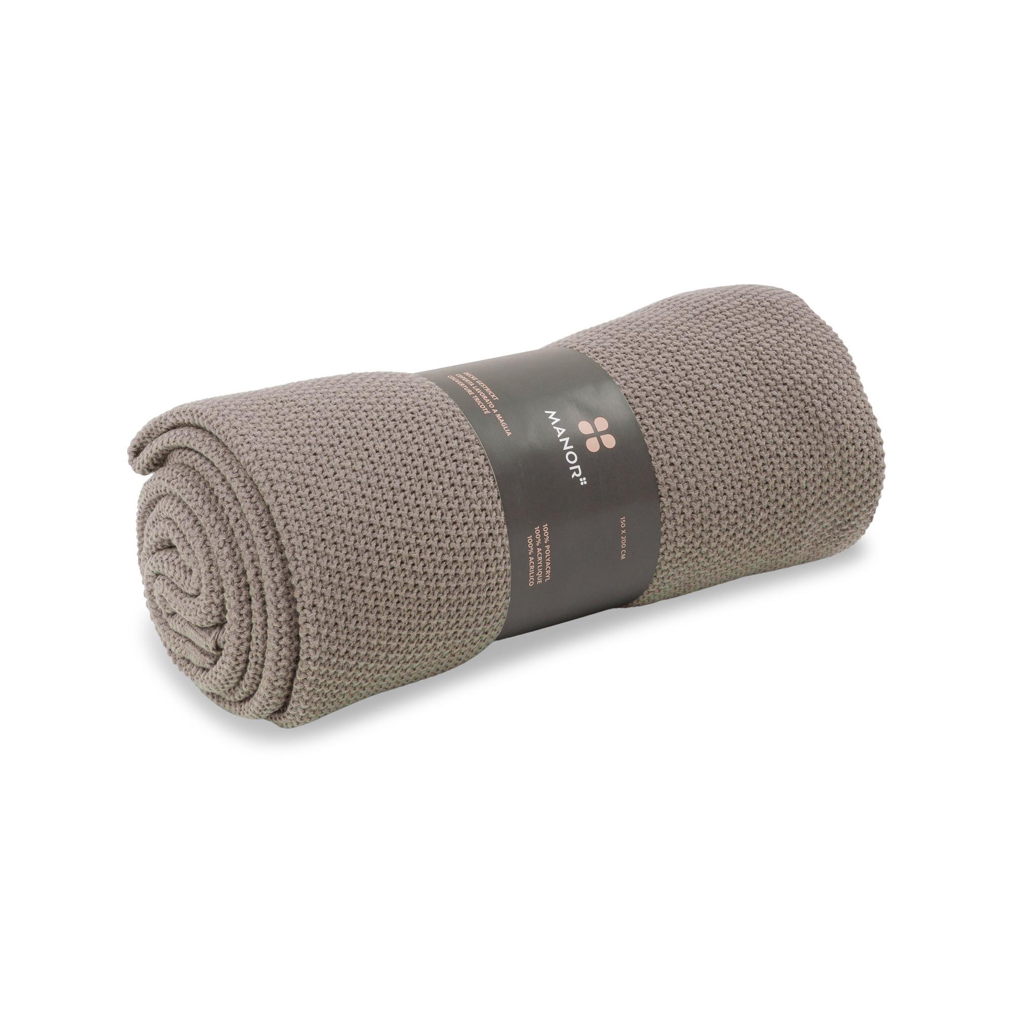 Questo plaid firmato Manor realizzato in maglia grossa morbida e calda crea un ambiente accogliente con un colore sobrio e un design semplice.
