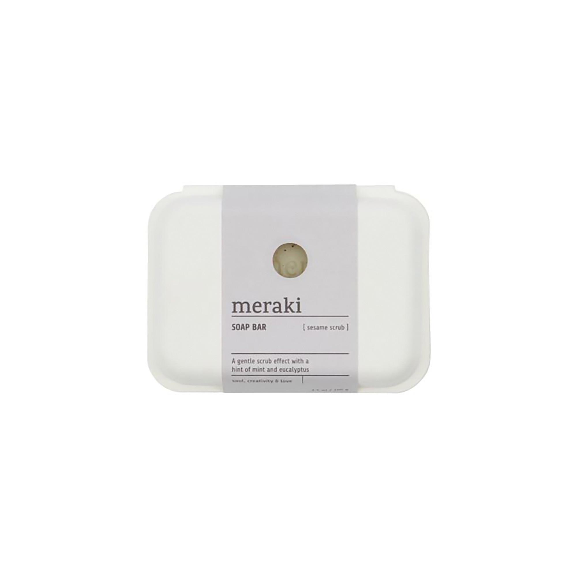 Esfoliate delicatamente le mani durante il lavaggio. Questa saponetta di Meraki rimuove le cellule morte grazie al sesamo, mentre gli oli essenziali di menta, legno di cedro ed eucalipto hanno un effetto leggermente rinfrescante. Mettete il sapone in un piatto in cucina o in bagno per riordinare il lavandino.