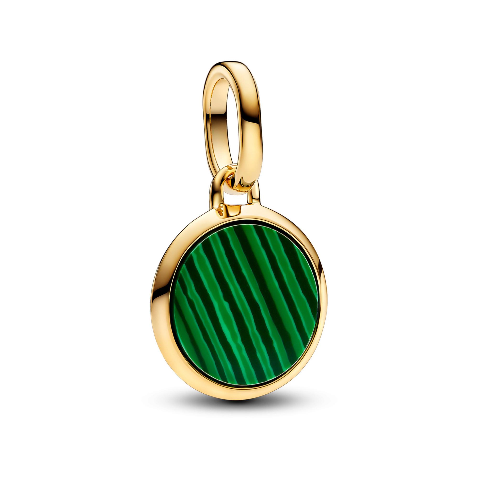 Dimensione minima, impatto massimo. Questo charm placcato in oro è ispirato alla pietra di malachite con il suo profondo colore verde e il motivo ondulato, simboleggiando trasformazione, crescita e positività. Il retro offre spazio per la tua incisione personale. È il regalo personalizzato perfetto per tutti coloro che ti stanno a cuore... e una bellissima dichiarazione d'amore per te stesso.
