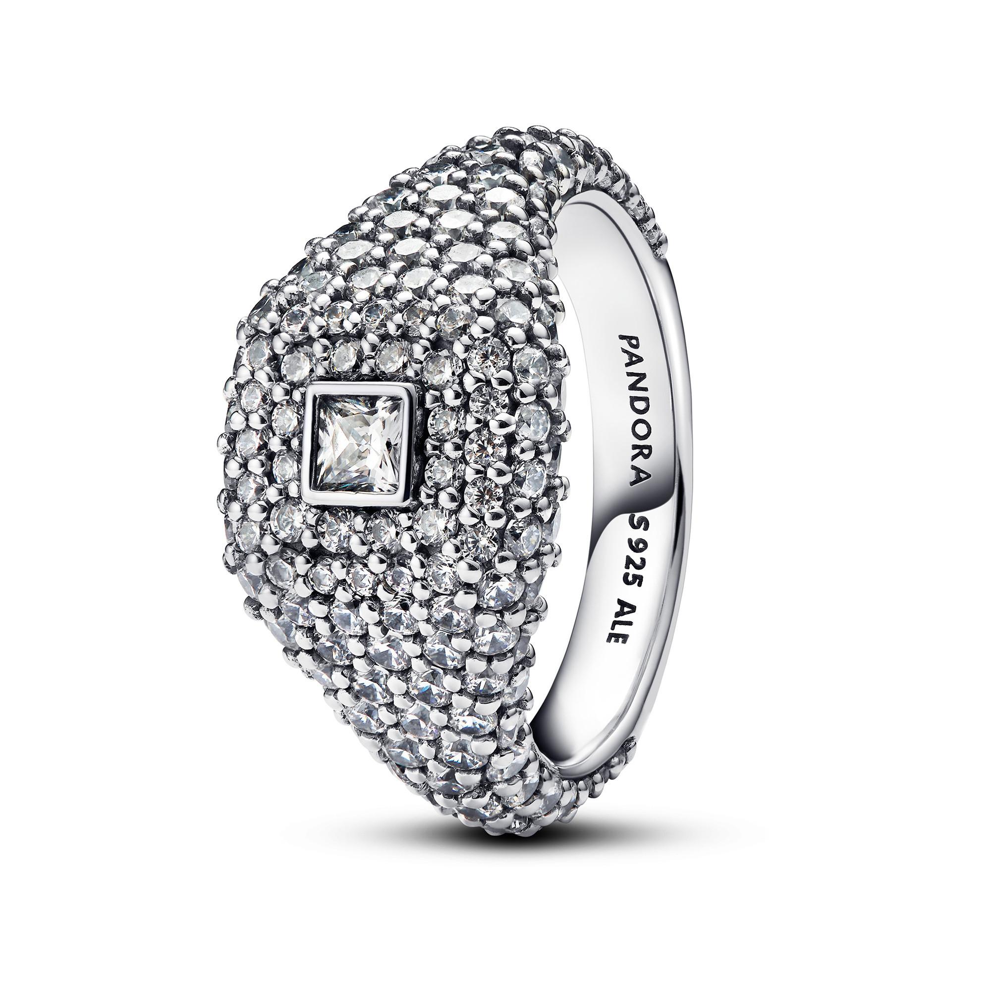 Splendi nel periodo natalizio e oltre con l'anello da cocktail quadrato in pavé. Il gioiello in argento sterling è incastonato con uno scintillante zircone trasparente al centro, circondato da pavé per la massima lucentezza e una finitura sensazionale. Perfetto per un look moderno o classico. Puoi abbinarlo ai tuoi outfit preferiti per una luminosità discreta.