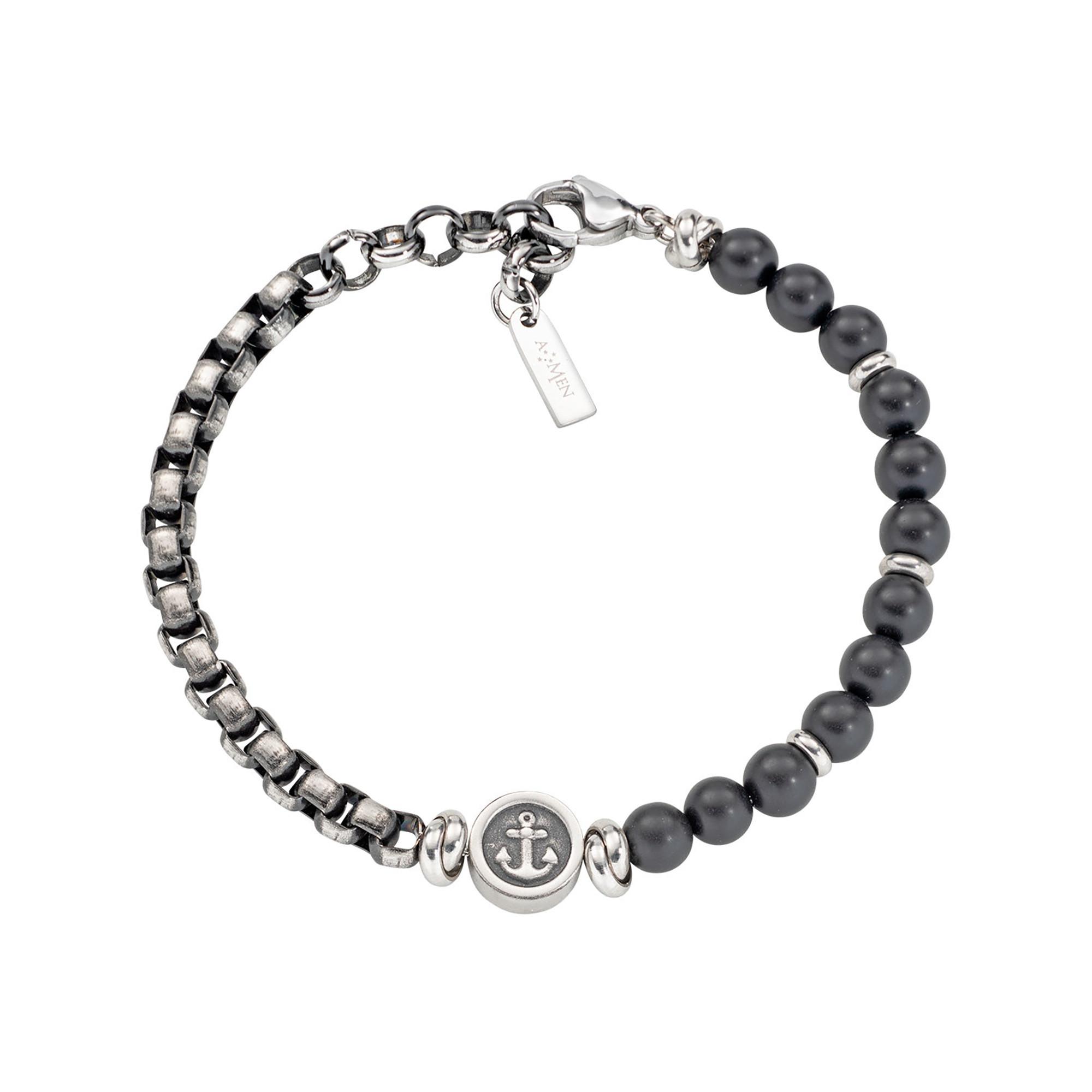 Questo bracciale maschile da uomo in acciaio inossidabile si distingue per la sua finitura spazzolata e le eleganti pietre in onice nero. Con un peso di 15,2 g, unisce stile e lavorazione di alta qualità.