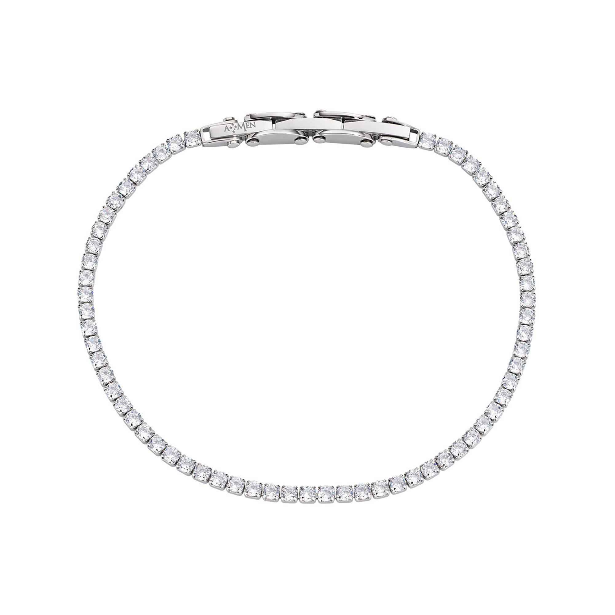Questo bracciale da uomo in acciaio inossidabile si distingue per la sua superficie in acciaio lucido e le scintillanti pietre di zircone bianca da 3 mm. Con una lunghezza regolabile da 19 a 21 cm e un peso di 8,5 g, offre comfort leggero e stile maschile.