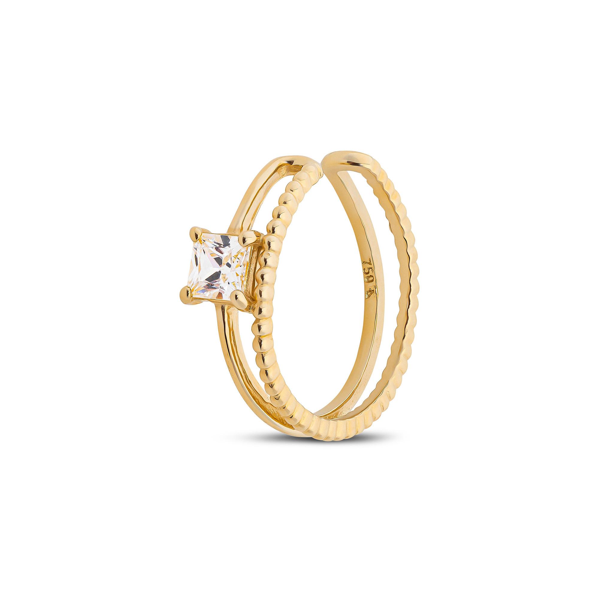 Questo auricolare a doppia fila firmato Studio Marquise in oro 18 carati è incastonato con uno zircone: un gioiello delicatissimo con un design di tendenza.