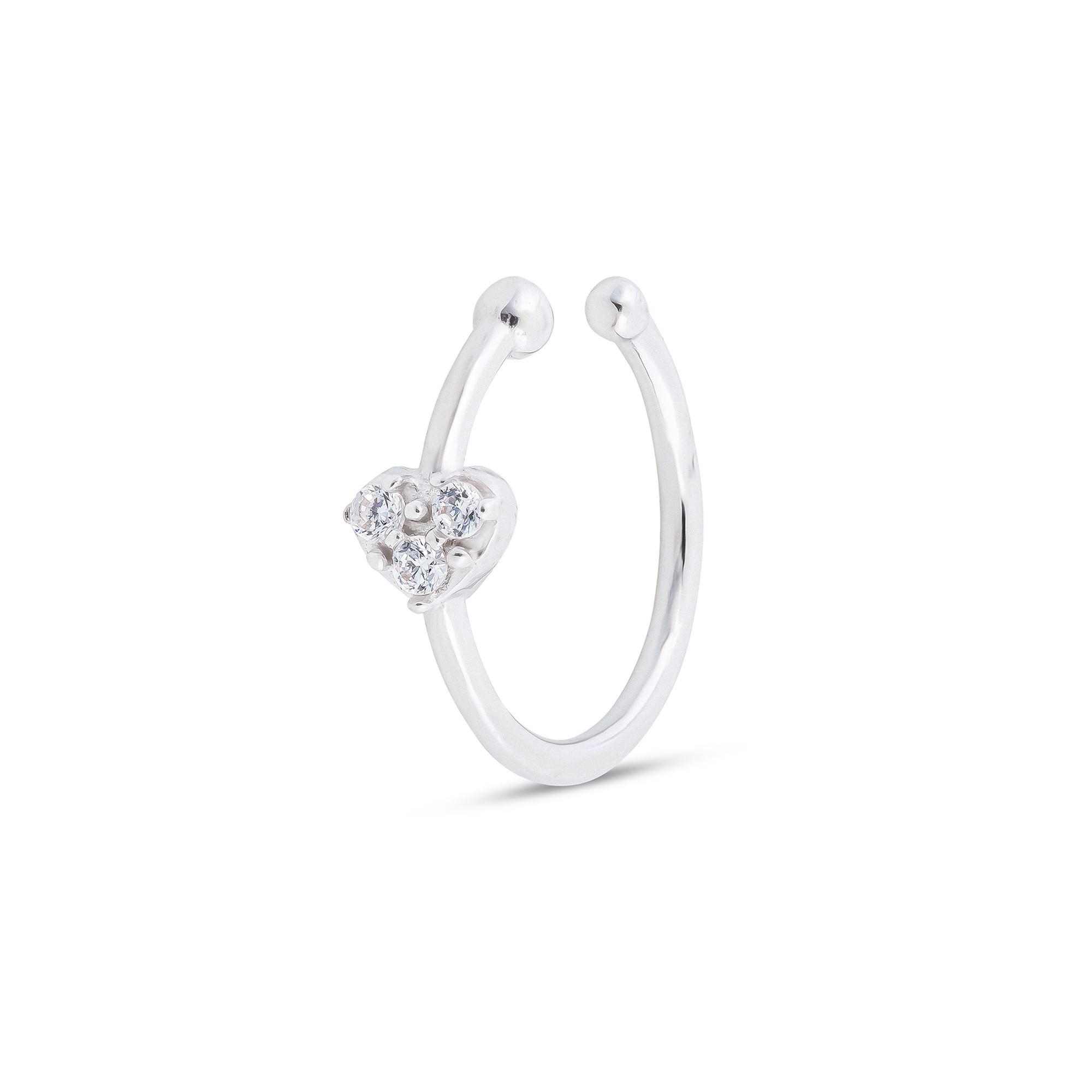 Questo orecchino singolo firmato Studio Marquise è realizzato in oro bianco puro e una forma a cuore incastonata di zirconi in una forma aperta.