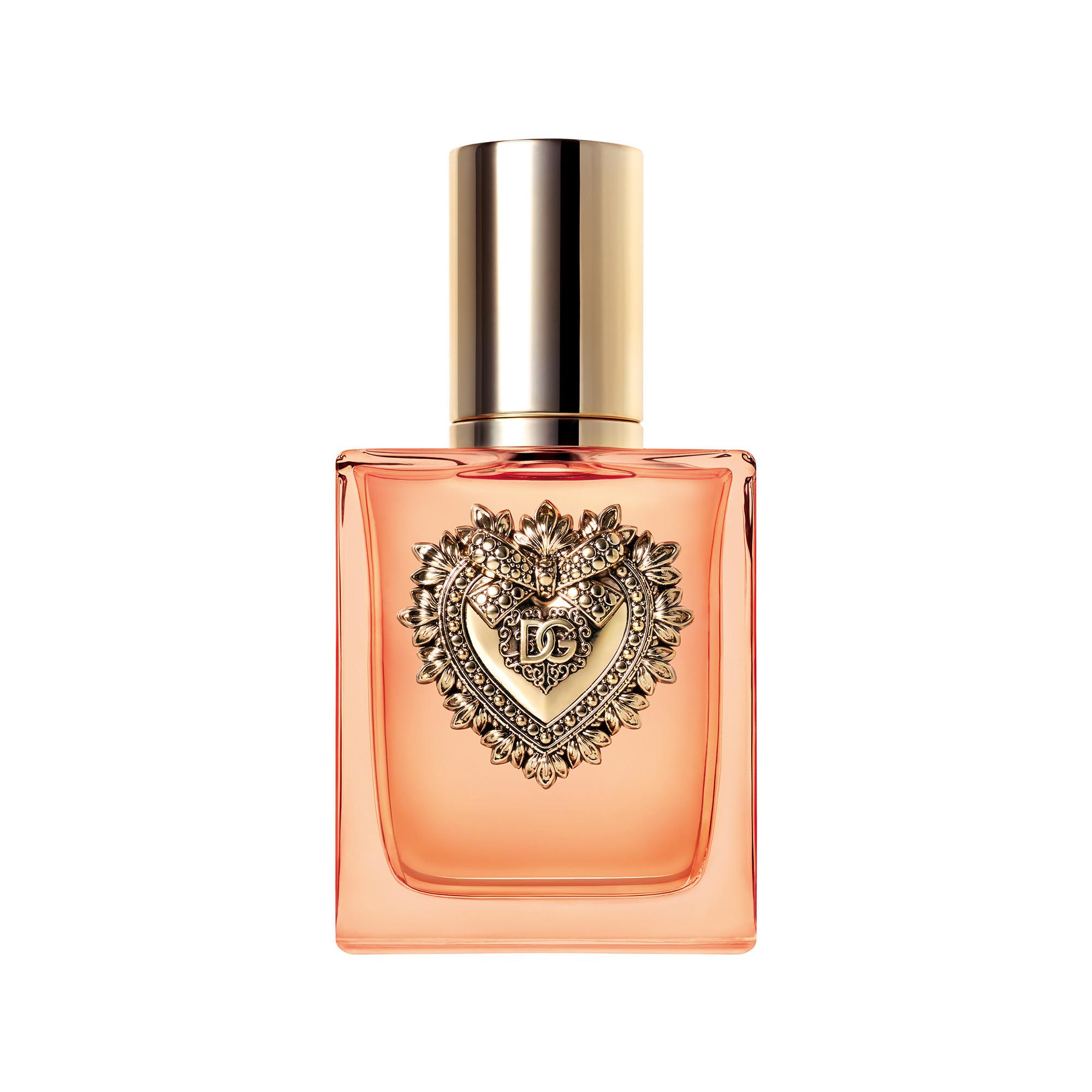 Dolce&Gabbana Devotion Eau de Parfum Intense è racchiuso in un luminoso flacone di vetro ambrato ornato dal caratteristico e simbolico Sacro Cuore.