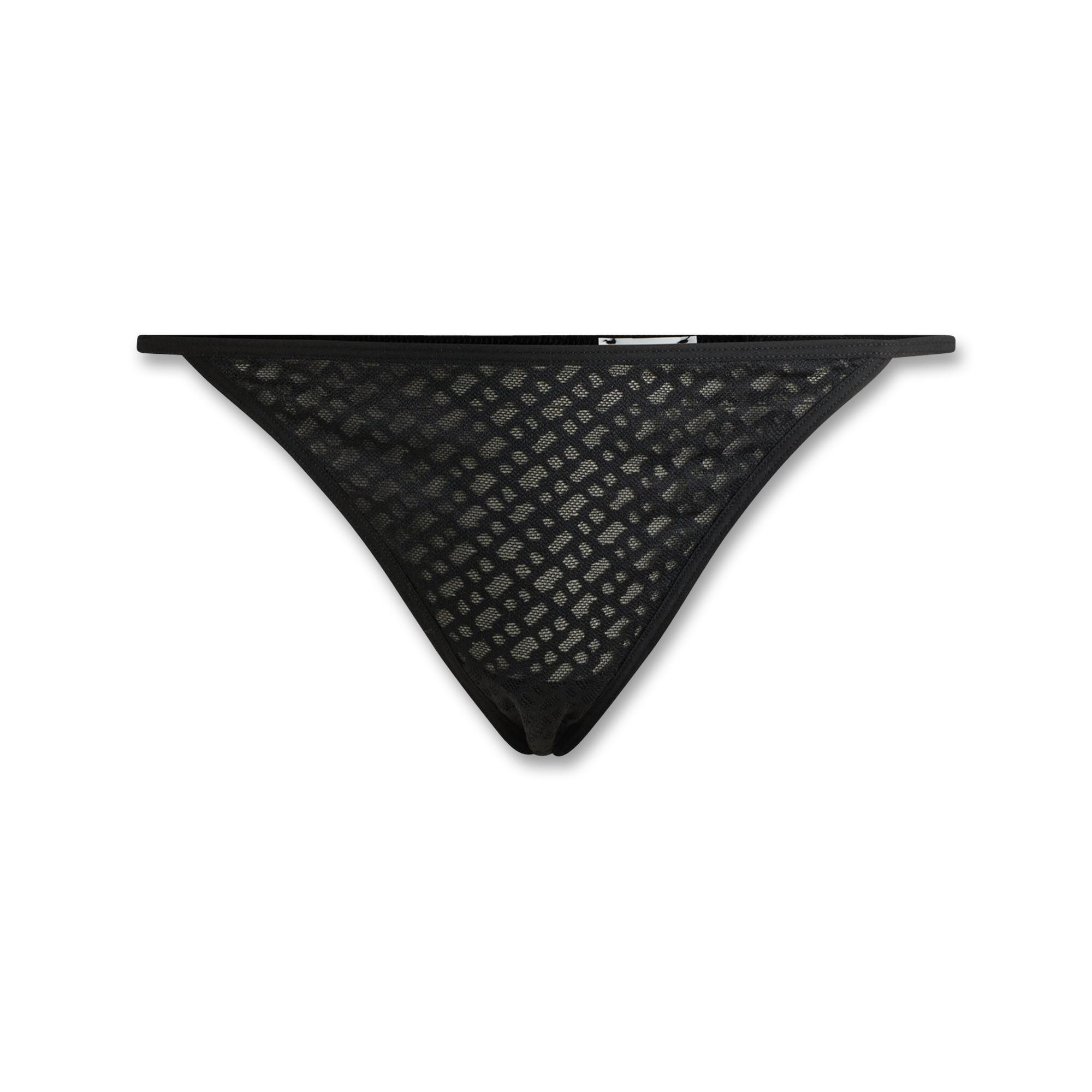 Questo perizoma firmato è realizzato in pizzo monogrammato e presenta una vita regolare con rifinitura in metallo sul retro del bordo.