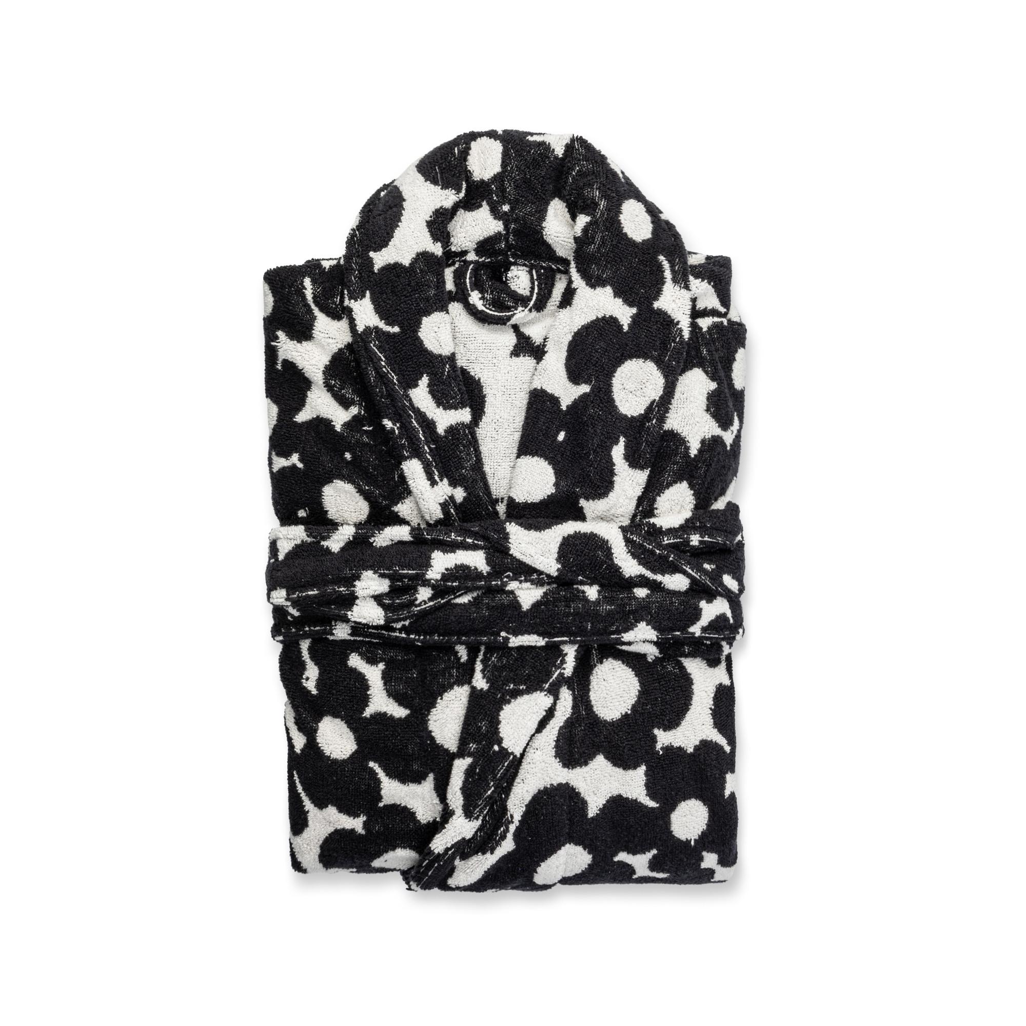L'accappatoio lungo Flowerpower è realizzato in spugna di puro cotone, il che lo rende particolarmente assorbente e morbido. L'accappatoio ha un taglio dritto con un ampio collo a revers e passanti per la cintura in due altezze, in modo che la cintura da annodare si adatti correttamente. Anche le maniche larghe e le grandi tasche applicate ne fanno parte: una sensazione spa allo stato puro.