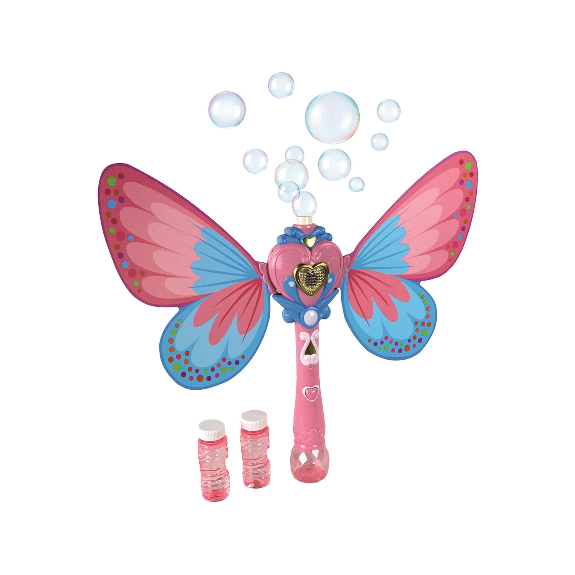 Con un gesto elegante, la bacchetta a farfalla rilascia una nuvola di bolle di sapone multicolori, scintillanti e leggere come piume. Una dolce melodia e la luce soffusa della bacchetta accompagnano le sfere iridescenti nel loro silenzioso volo verso il cielo. Un momento magico! Per evitare che le sottili ali di farfalla si rovinino, è sufficiente rimuoverle dopo aver giocato. Contenuto: bacchetta magica, ali di farfalla x2, 60 ml di soluzione Pustefix x2
