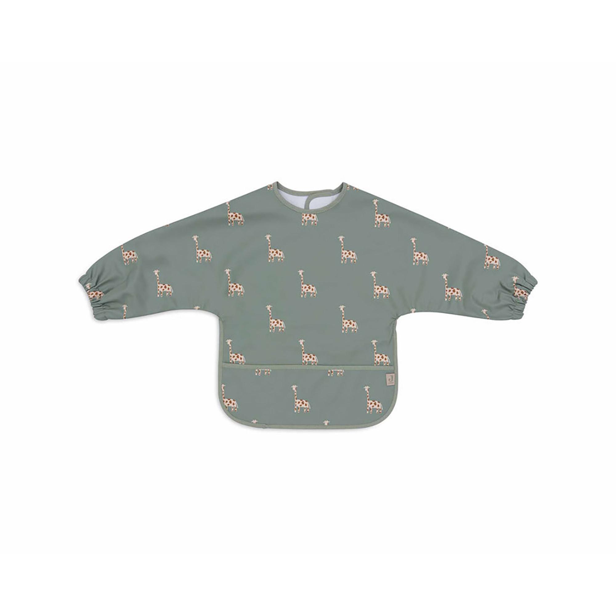 Questo bavaglino con maniche protegge particolarmente bene i vestiti del tuo bambino. Il bordo inferiore raccoglie i resti di cibo, mantenendo tutto pulito. Con il tema divertente Jungle Jambo e le giraffe su sfondo verde cenere, è ancora più divertente.