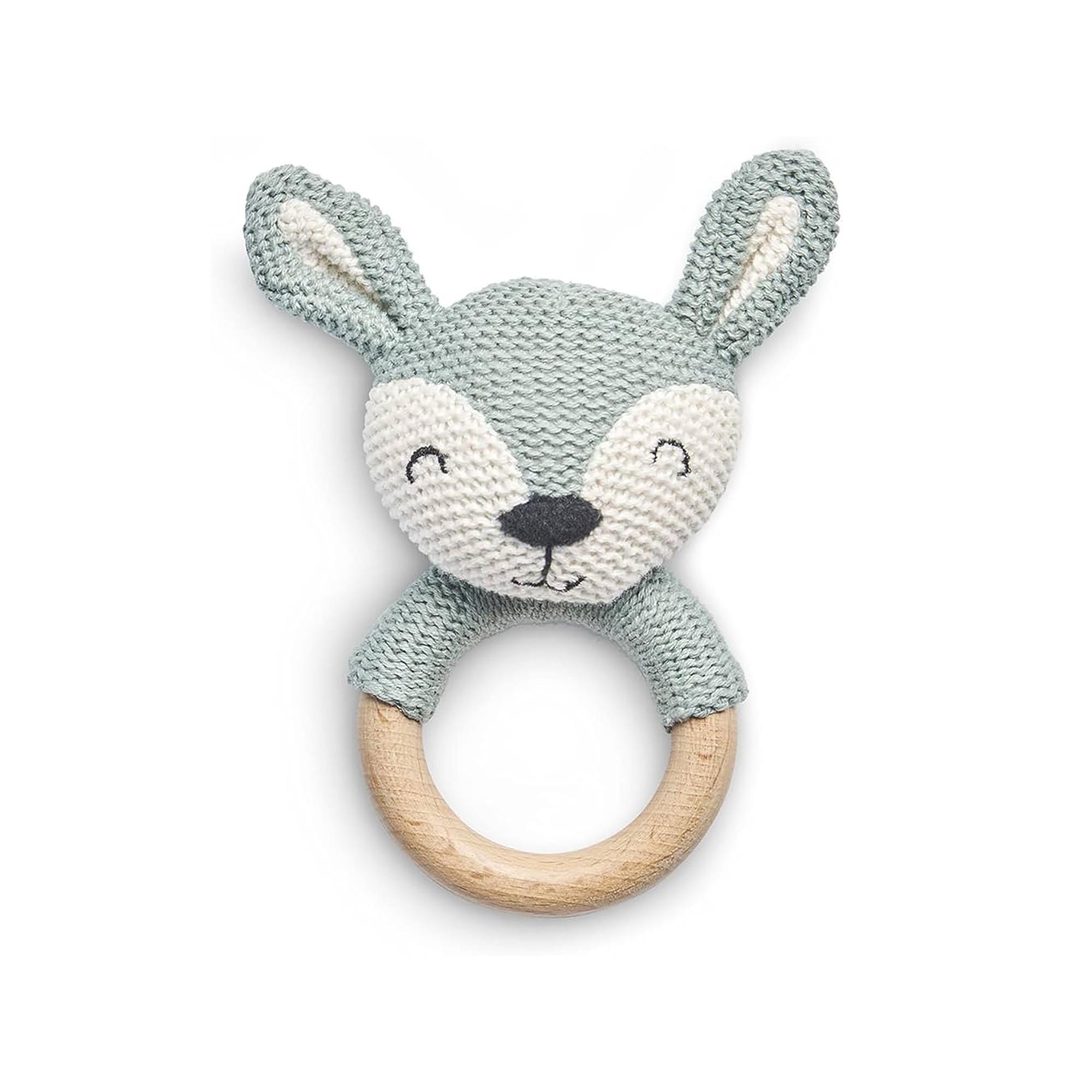 Questo giocattolo di Jollein è sia un anello da dentizione che un sonaglio per bambini. La testa del piccolo cervo sull'anello di legno è saldamente fissata e guarda il tuo bambino con un sorriso amichevole. La testa del cervo ha una campanella che emette un suono quando viene toccata. L'anello facilita la presa e viene usato dal tuo bambino per succhiare e mordere. Realizzato in legno naturale al 100% e cotone, questo anello da dentizione è perfetto per i bambini che stanno facendo i denti. Allevia il fastidio causato dalla dentizione e fornisce una distrazione piacevole. Questo giocattolo è un bel regalo di nascita e può essere abbinato anche con i fazzoletti e gli animali di peluche di Jollein.