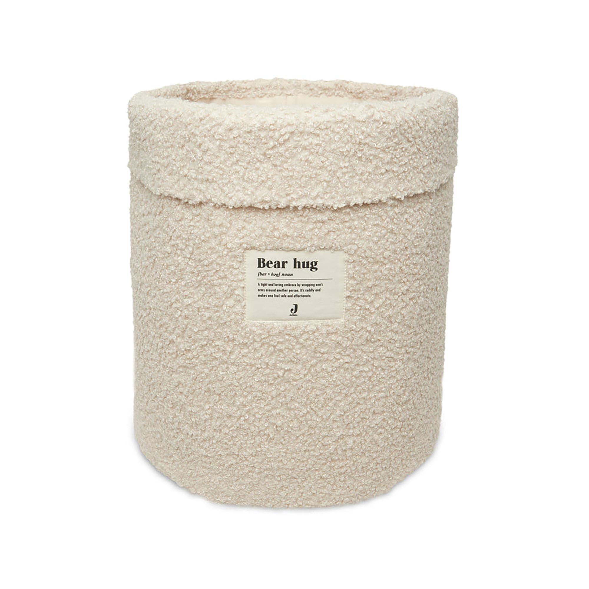 Questo pratico cestino di stoccaggio Boucle di Jollein è realizzato in morbido tessuto bouclé ed è ideale per riporre vari oggetti. Offre spazio sufficiente per piccoli prodotti per la cura, come kit per manicure, spazzole e termometri. Il logo "Bear-Hug" sulla parte anteriore rende il cestino un bel complemento d'arredo che arricchisce la cameretta e mantiene ordinata la superficie del fasciatoio.