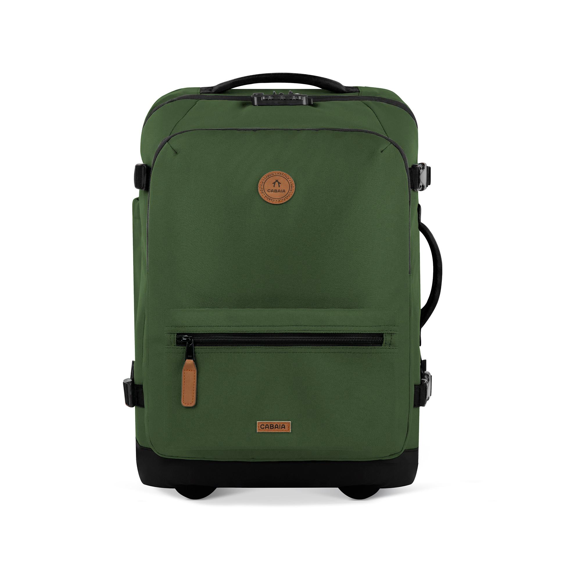Questa valigia in tessuto versatile offre numerose funzioni pratiche: con tracolla per il trasporto sulla schiena, uno scomparto imbottito per laptop di tutte le dimensioni e una serratura TSA integrata per una maggiore sicurezza. Ha uno scomparto esterno per le bottiglie, una maniglia superiore e due laterali. Il sistema MOLLE antifurto consente la sostituzione delle tasche anteriori. Inoltre, la valigia è dotata di due ruote intercambiabili, un'asta telescopica sostituibile, materiali vegani e proprietà idrorepellenti.