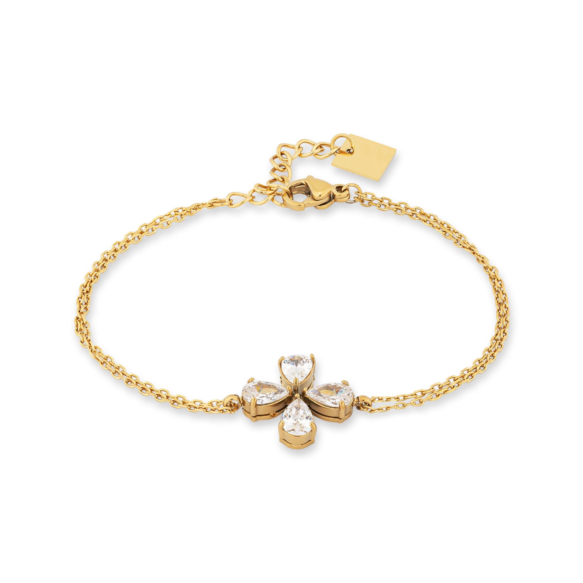 Questo bracciale in filigrana firmato Zag Bijoux con il trifoglio, che brilla di tutti i colori spettrali grazie alle pietre ornamentali sfaccettate, è un gioiello femminile dal design contemporaneo.