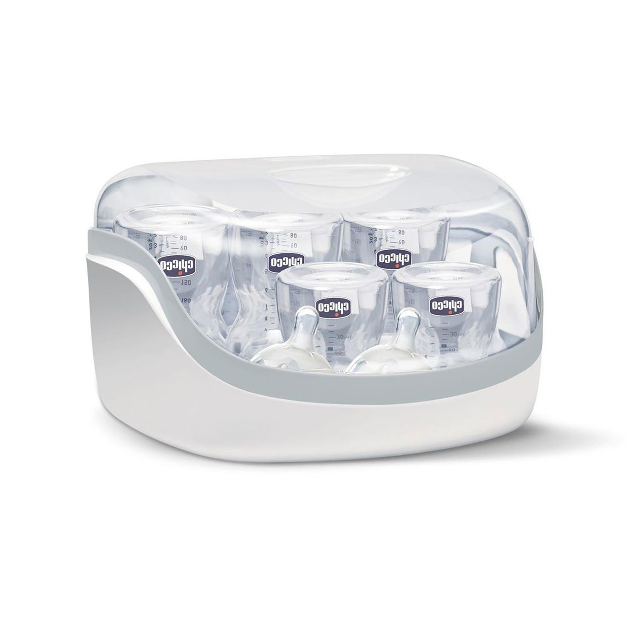 Con lo sterilizzatore a vapore per microonde, tutti gli oggetti in plastica del bambino (biberon, tettarelle, succhietti, piccoli giocattoli, stoviglie, ecc.) vengono sterilizzati rapidamente e accuratamente. In soli 5 minuti, fino a 5 biberon e accessori (anelli a vite e tettarelle) possono essere sterilizzati e disinfettati a 840 W con il vapore. Gli oggetti rimangono sterili per circa 5 ore con il coperchio chiuso.