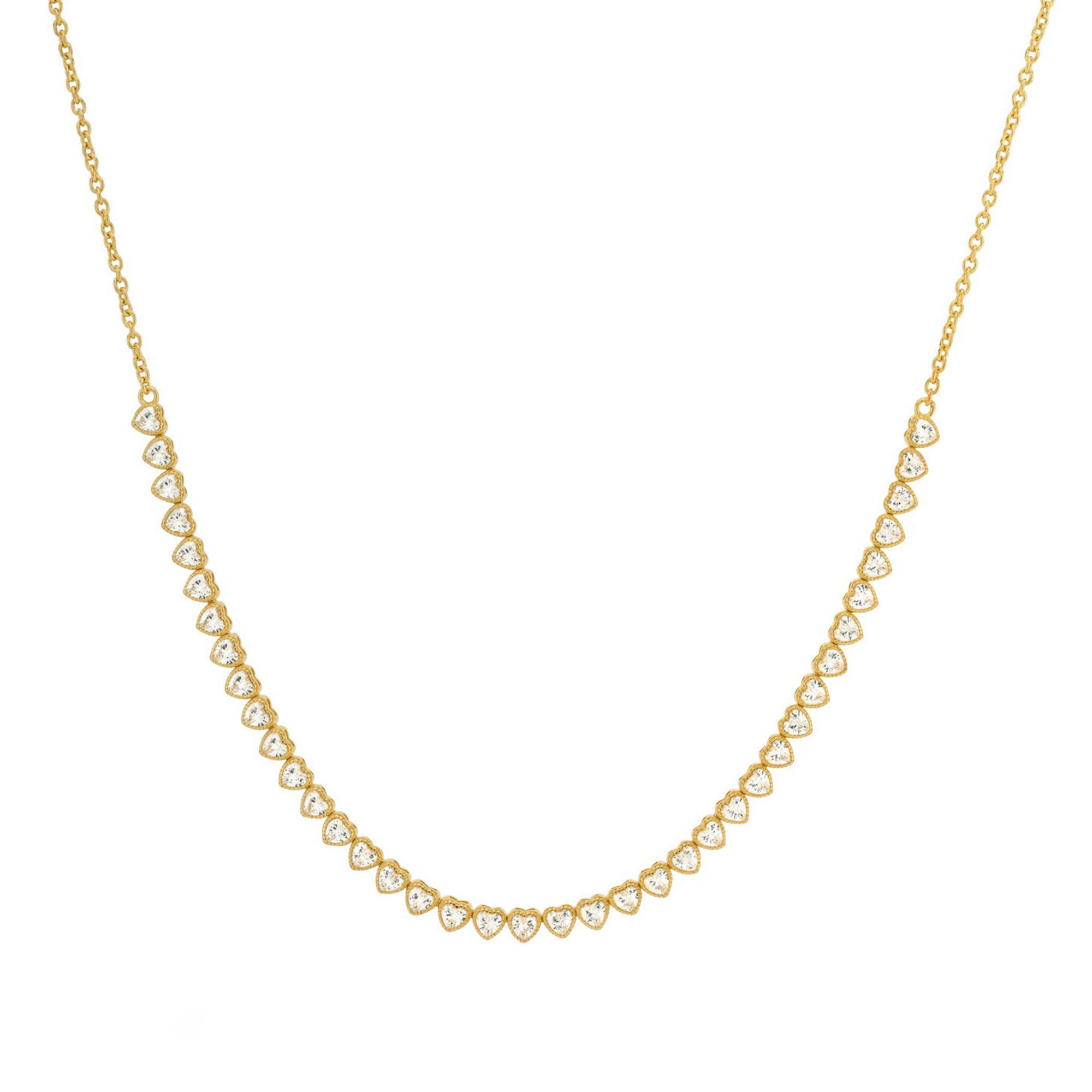 Questa bellissima collana ha una fila di piccoli cuori bianchi in pietre ed è un vero colpo d'occhio. Questa collana è perfetta da combinare con altre collane per un look completo! Tutti i gioielli 24Kae sono progettati con amore e un occhio per i dettagli da Kae Sutherland. Ogni collana 24Kae ha un charm fatto a mano con incisione del marchio. Dettagli: - Lunghezza della collana: 40 cm + 5 cm di estensione - Dimensione dei cuori: 3,4 mm Materiali: - Argento sterling 925, placcato in oro 18K - Pietre in zirconia cubica