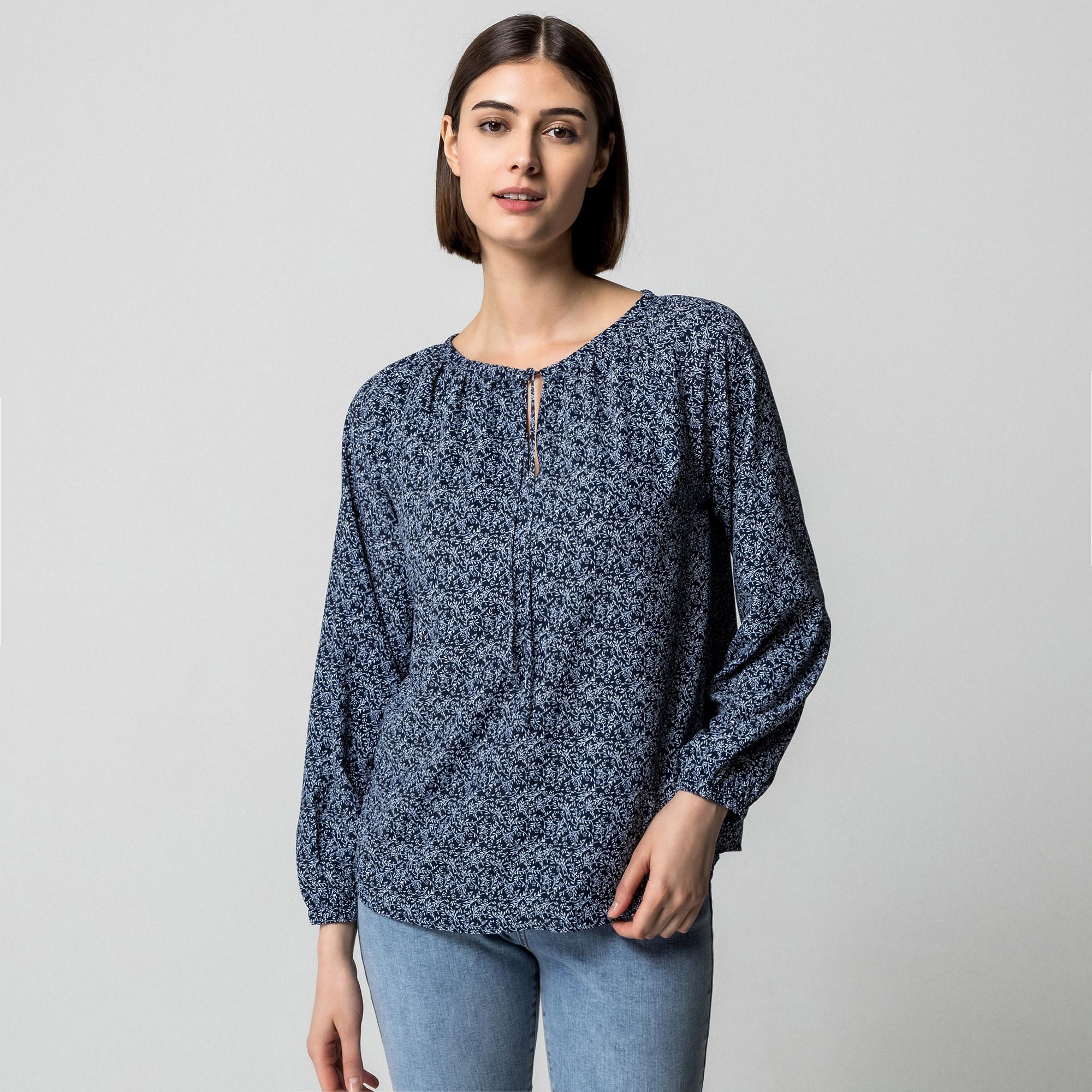 Questa camicetta offre leggerezza ariosa, arricciature e maniche lunghe con polsini, rendendola un capo basic dal fascino allegro che si abbina facilmente a molti stili.