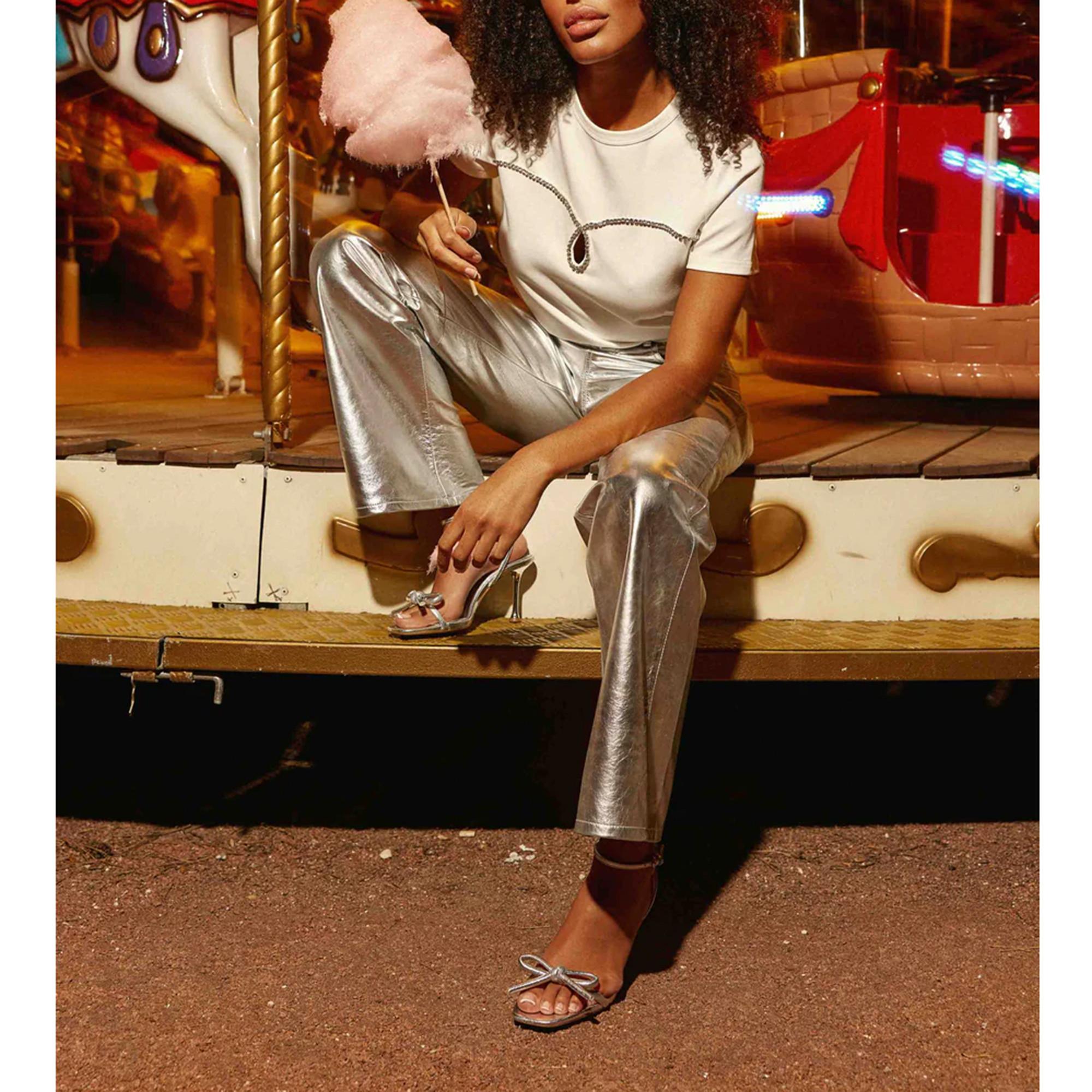 Questa t-shirt è composta dal 95% di cotone e dal 5% di elastan. Si caratterizza per la sua vestibilità dritta, il design con strass sulla parte anteriore, il collo rotondo e le maniche corte.