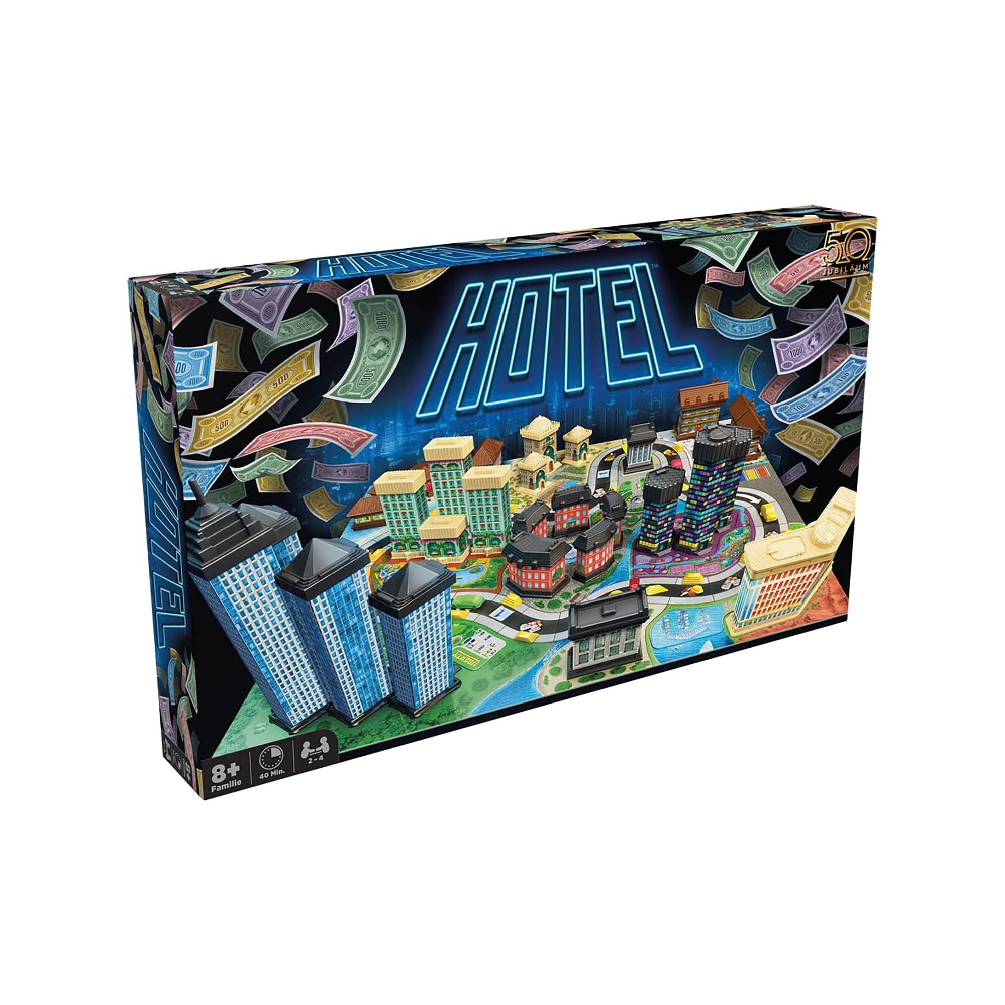 Il classico cult della famiglia Hotel è tornato! In occasione del suo 50° anniversario, la versione 2024 esce in un elegante design retrò, ma con le stesse regole spietate. Comprate appezzamenti di terreno, costruite hotel di lusso e lasciate che il tabellone di gioco cresca a poco a poco con imponenti edifici in 3D. Pretendete prezzi altissimi dai vostri avversari e continuate a investire. Ma attenzione! Se si esaurisce il denaro, gli hotel e le proprietà, si va in bancarotta. Il vincitore è l'ultimo giocatore ancora in gioco dopo che tutti gli altri sono falliti.