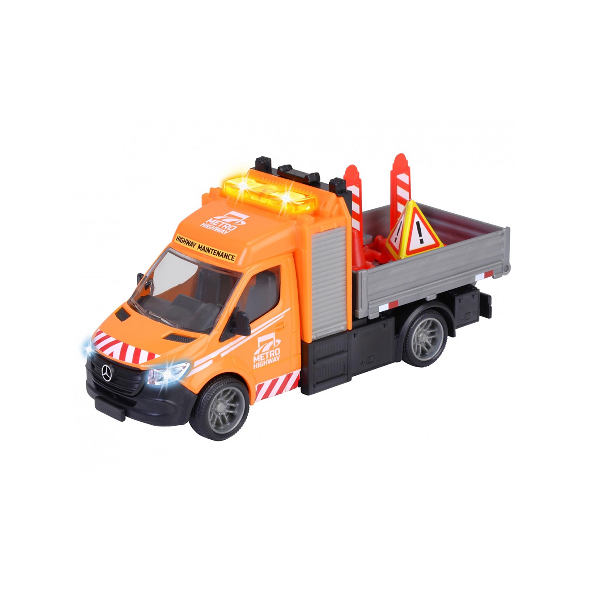 Majorette - Veicolo da cantiere Mercedes-Benz (15 cm) - grande auto giocattolo con area di carico inclinabile, luci, suoni e segnali stradali, per bambini dai 3 anni in su