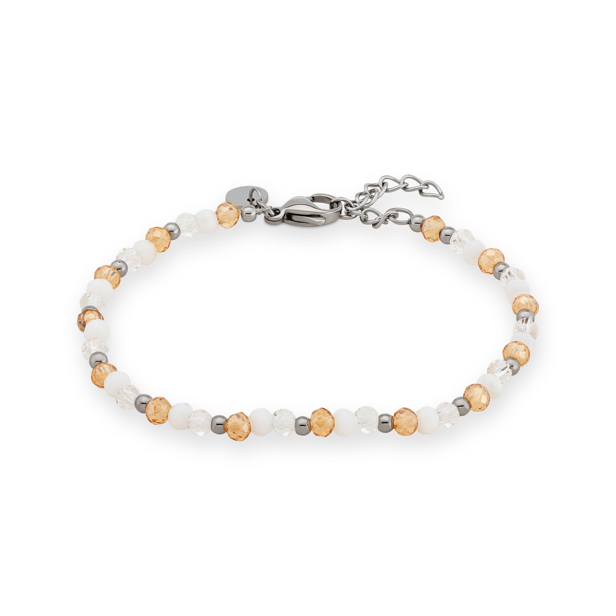 Questo braccialetto firmato L'Atelier con pietre decorative di diversi colori è realizzato in acciaio inossidabile. È un gioiello delicato e allegro dall'estetica filigranata. È regolabile in lunghezza e si chiude elegantemente con un moschettone.
