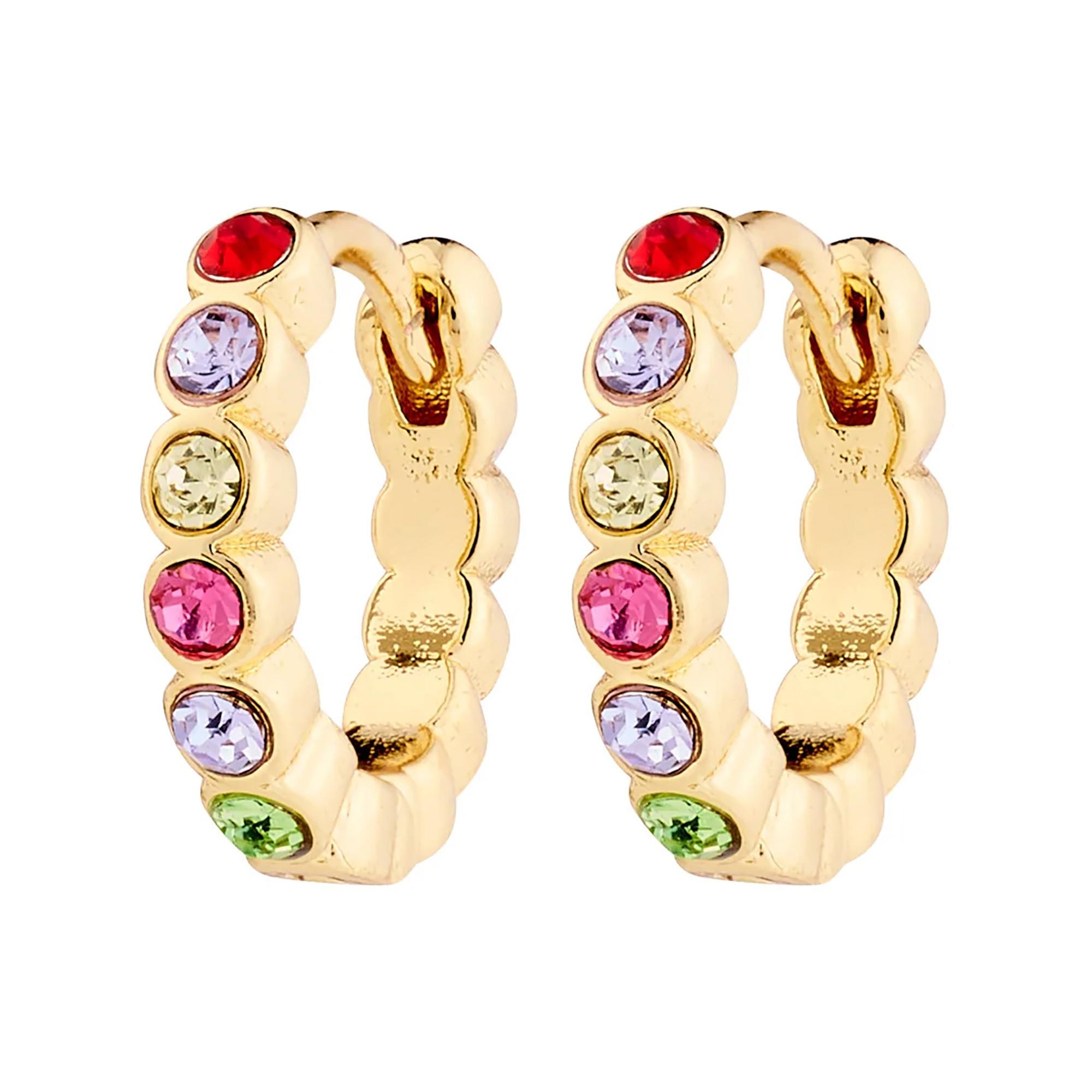 Gli scintillanti Huggie Hoops modello KLEOPRATRA firmati Pilgrim donano alla mise una lucentezza colorata. Con cristalli Preciosa colorati e una chiusura a scatto facile da usare, questi orecchini a cerchio placcati in oro sono il complemento perfetto per tutti i giorni. Realizzati con l'89% di materiale riciclato,