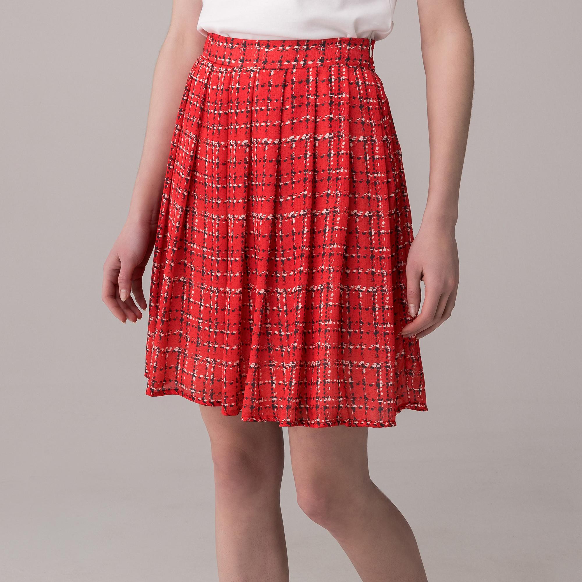Questa gonna corta a pieghe è realizzata in un morbido tessuto intrecciato e fluido con una stampa all-over. Presenta una vita larga e una cerniera laterale.