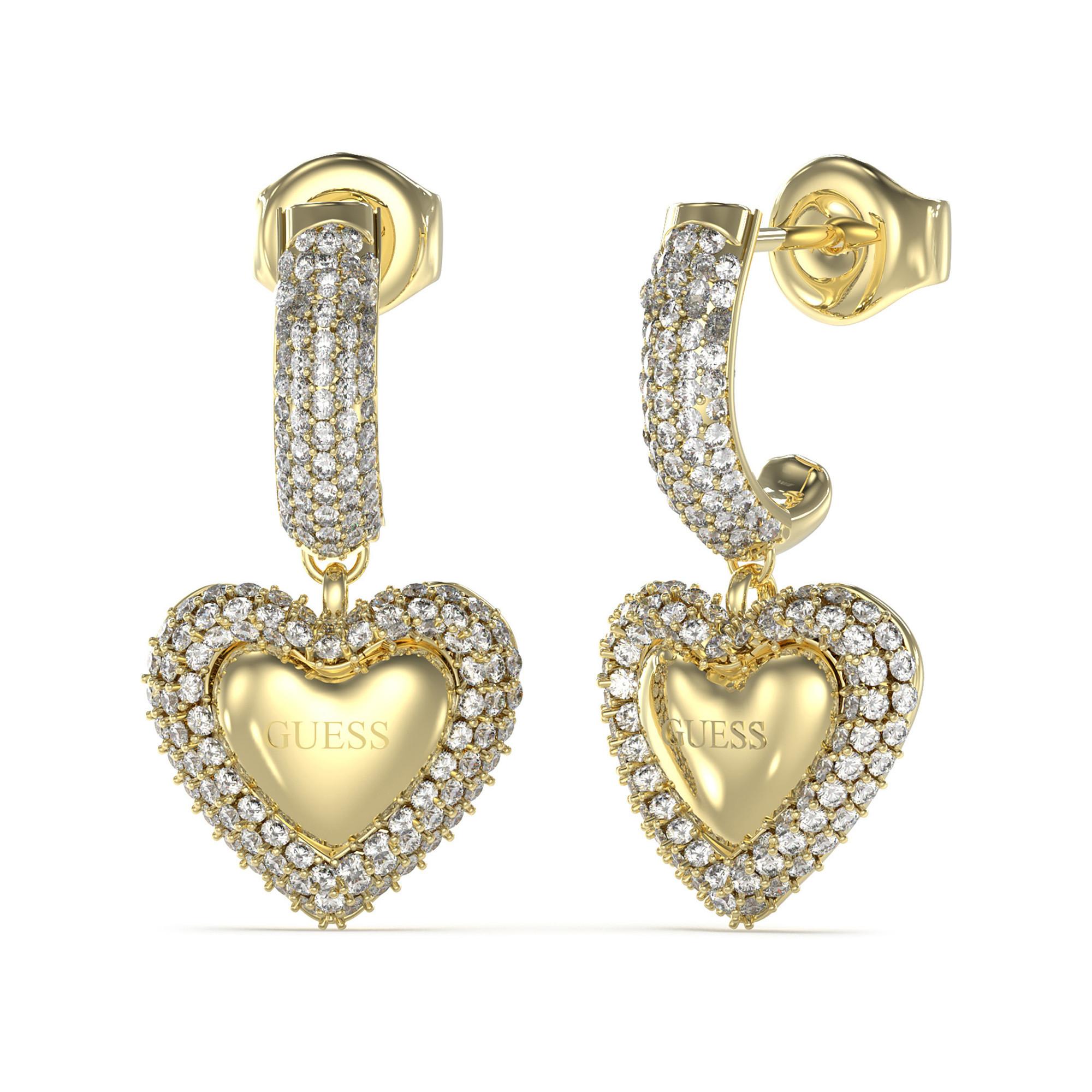 "Gli orecchini a cerchio in acciaio inossidabile/PVD Guess ""Beloved"" in oro giallo combinano uno stile intramontabile con dettagli moderni. Elementi a forma di cuore e zirconi donano un tocco romantico. Realizzati in acciaio inossidabile di alta qualità, offrono durata e comfort. Perfetti per le occasioni speciali o come richiamo visivo quotidiano. "