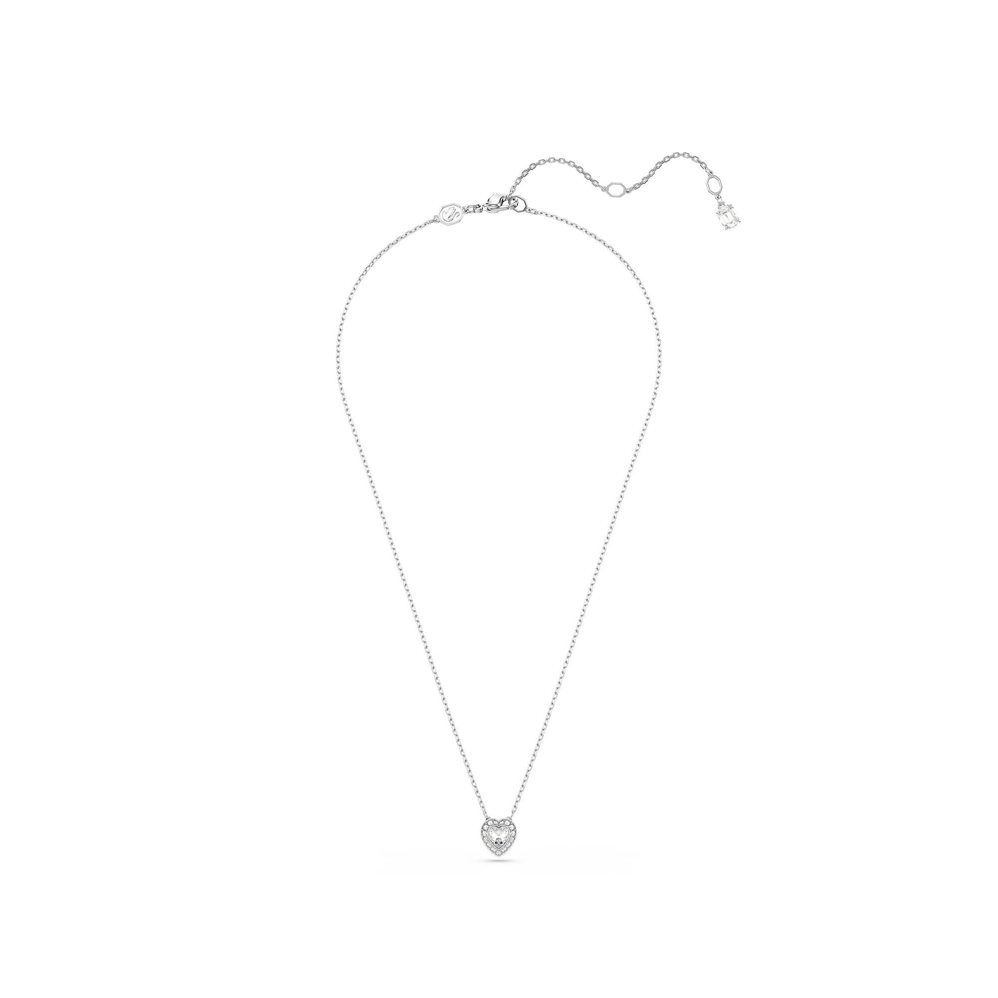 Segui il tuo cuore e lascia correre liberamente le tue emozioni romantiche con questo radioso ciondolo Swarovski. Il design rodiato su una catena delicata