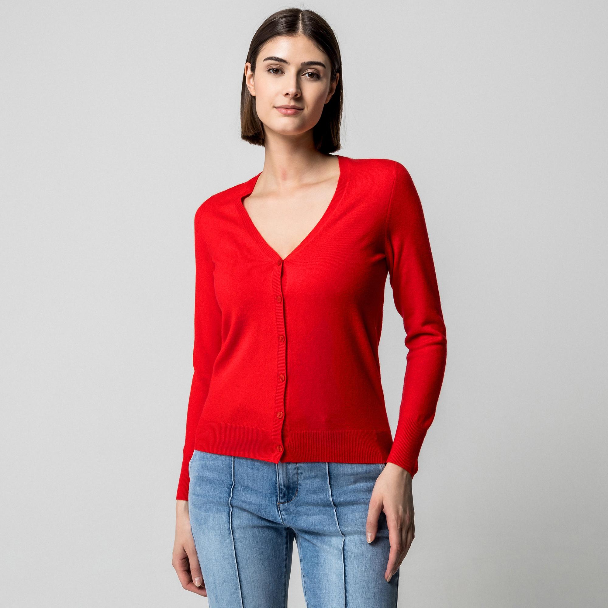 Questo cardigan in maglia fine è realizzato in puro cashmere con scollo a V, maniche lunghe e finiture a coste. Il taglio dritto classico lo rende un capo versatile ed elegante per tutto l'anno.