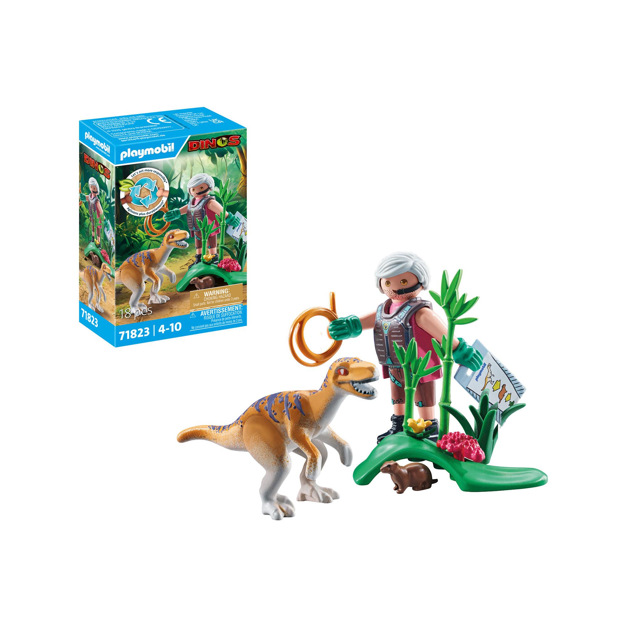 Un pericoloso velociraptor sta dando la caccia a un piccolo mammifero roditore che si nasconde abilmente in un cumulo di terra. Mentre il ricercatore di dinosauri si interroga sull'opportunità di intervenire, documenta l'affascinante spettacolo della catena alimentare naturale. Una robusta corazza lo protegge da eventuali attacchi del velociraptor. Include una scheda di conoscenza dei dinosauri.