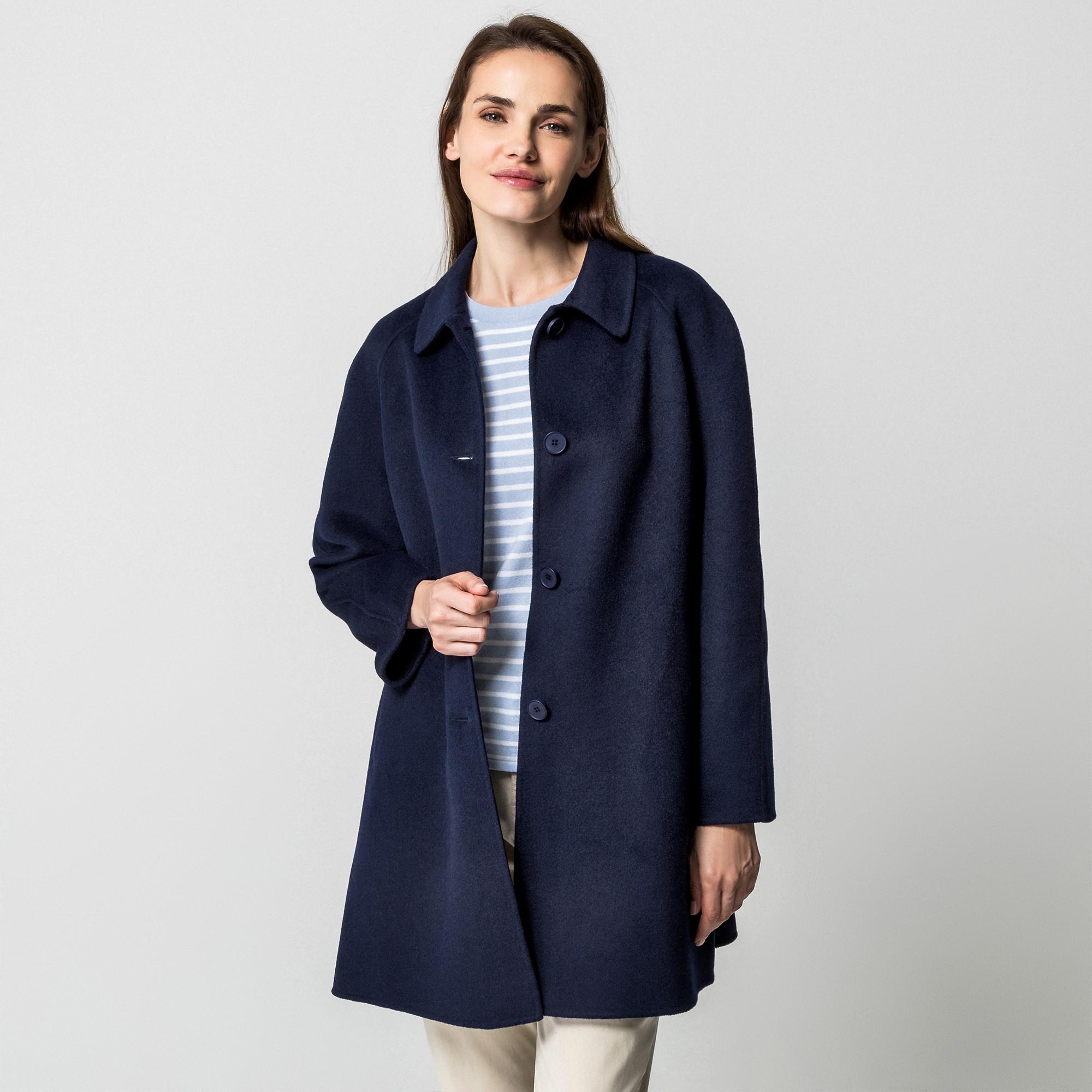 Questo cappotto è realizzato in morbido e leggero misto lana. Con un taglio informale e una sobria linea svasata, è un elegante cappotto da mezza stagione dal fascino retrò.