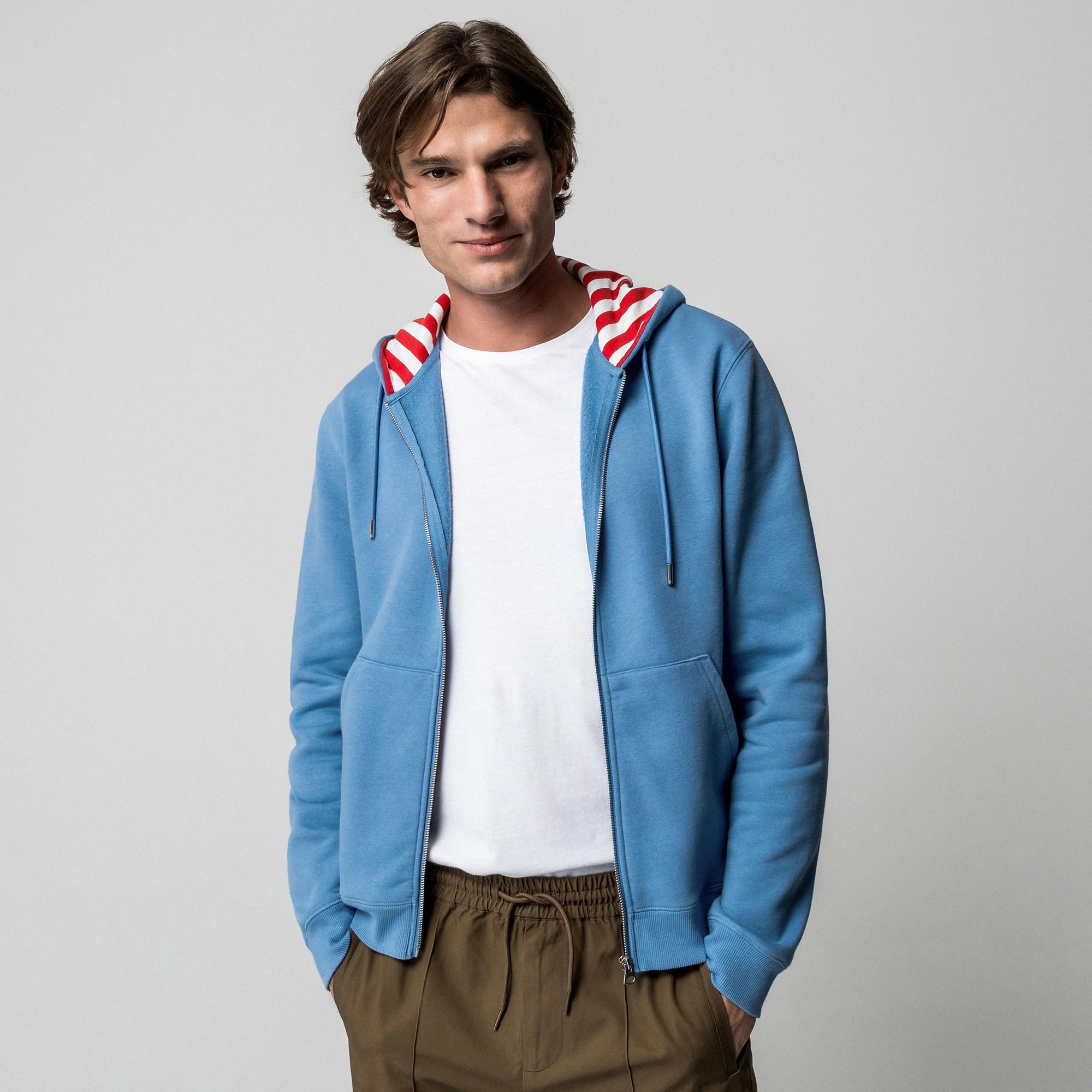 Manor Man, Full Zip Hoodie con fodera del cappuccio a righe