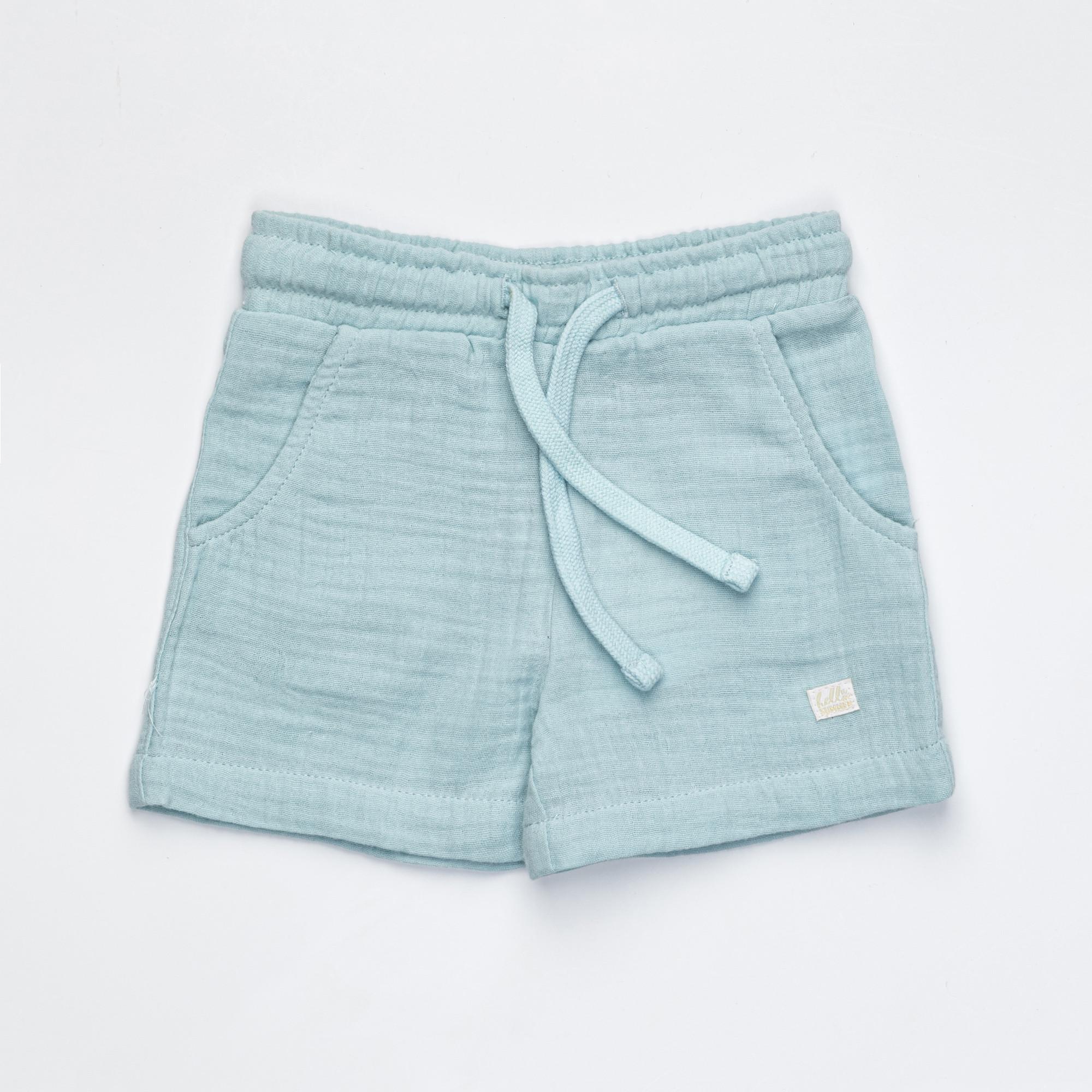 I pantaloncini leggeri firmati Manor Baby sono realizzati in morbida mussola di cotone biologico al 100% e offrono un piacevole comfort. Un elastico in vita con cintura a cravatta integrata assicura una vestibilità flessibile, mentre le tasche laterali e una tasca posteriore fungono da dettagli pratici.